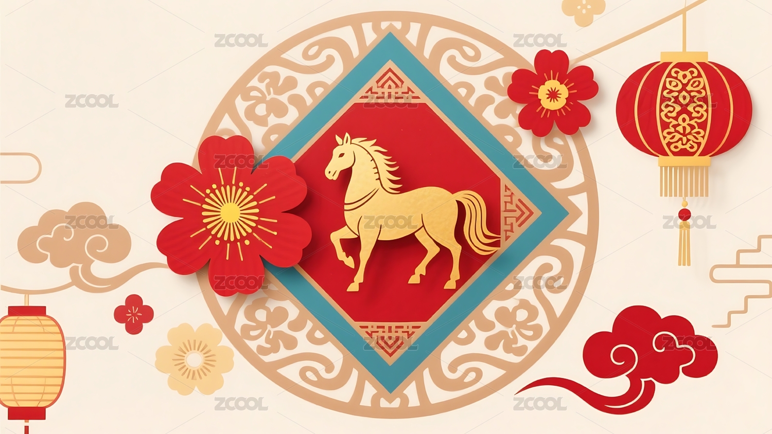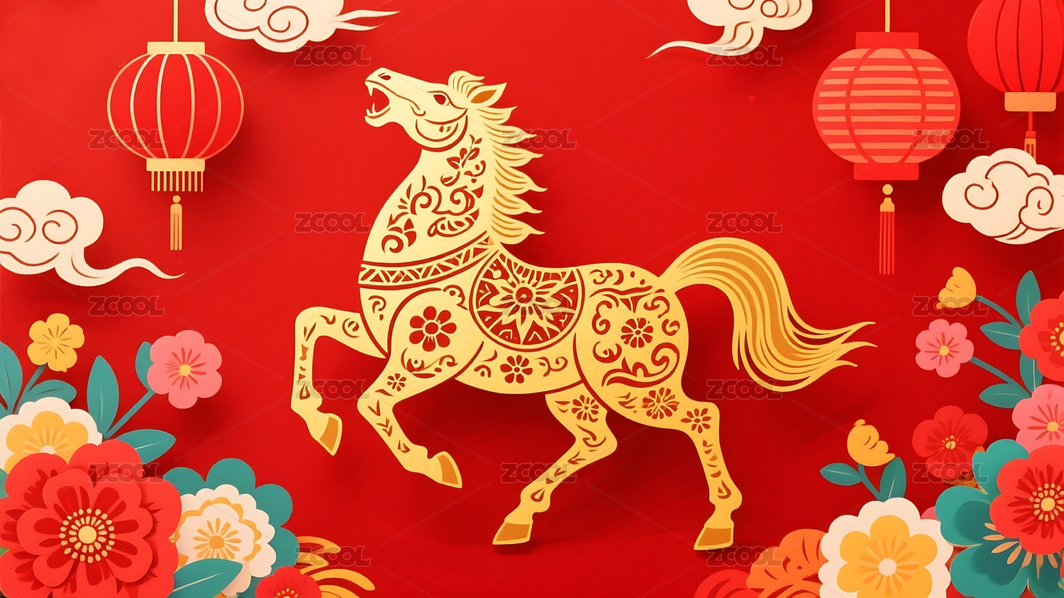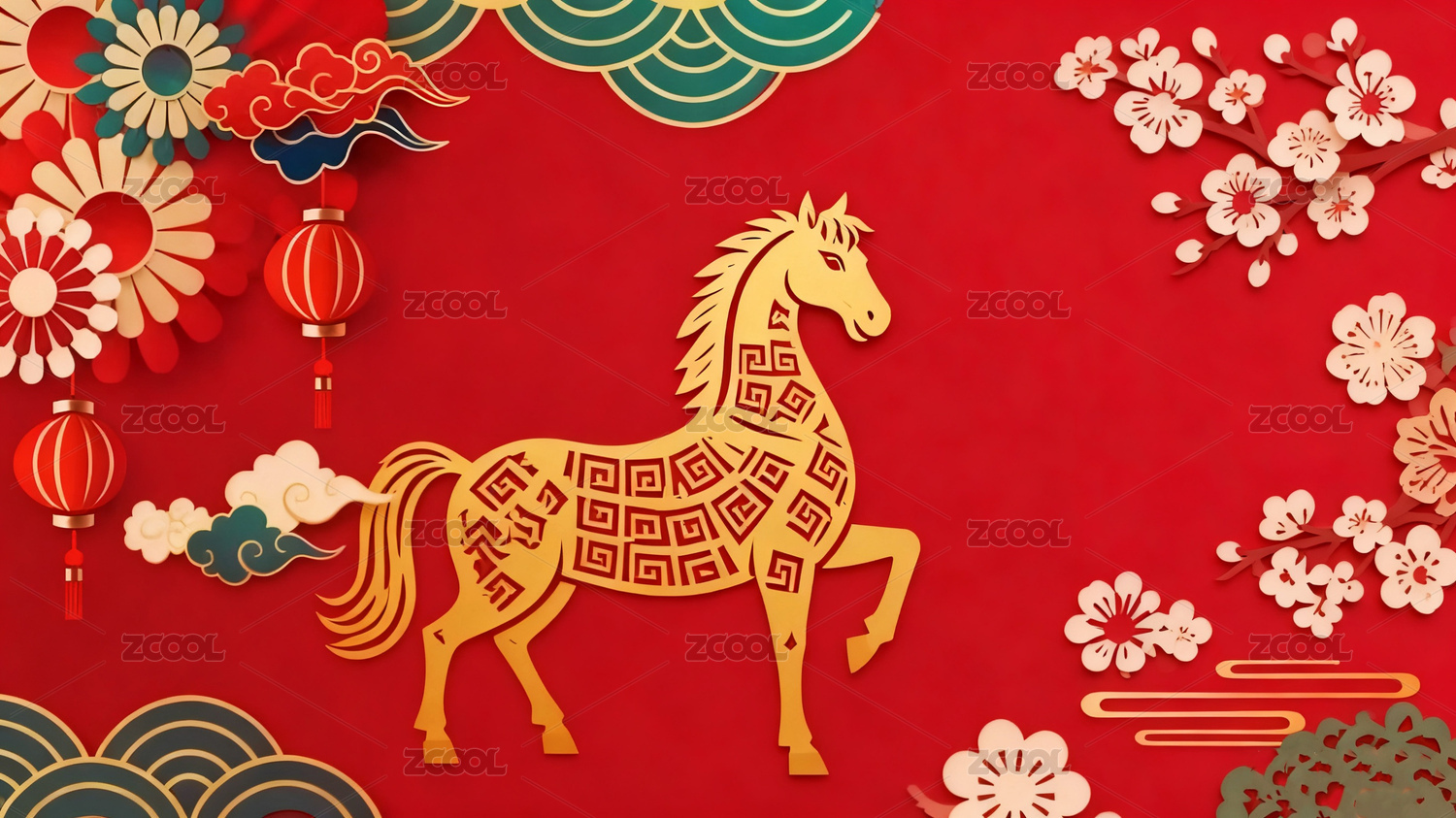 装饰,图案,马,灯笼,梅花,云,花纹,红色,剪纸,春节