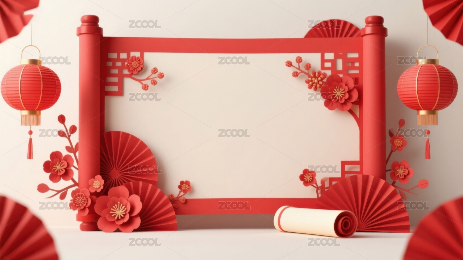 红色春节卷轴装饰背景