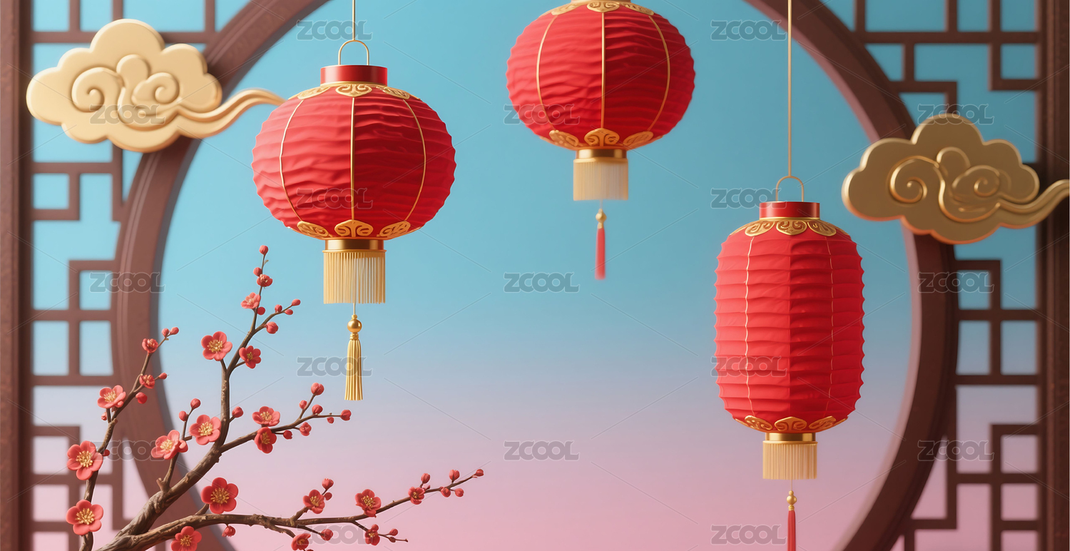 3D新中式传统艺术灯笼背景