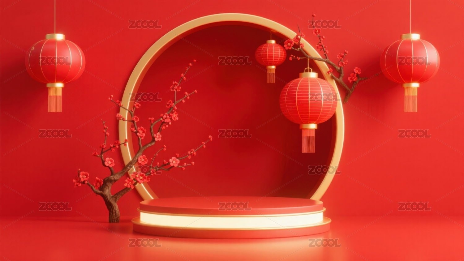 红色背景梅花灯笼展台