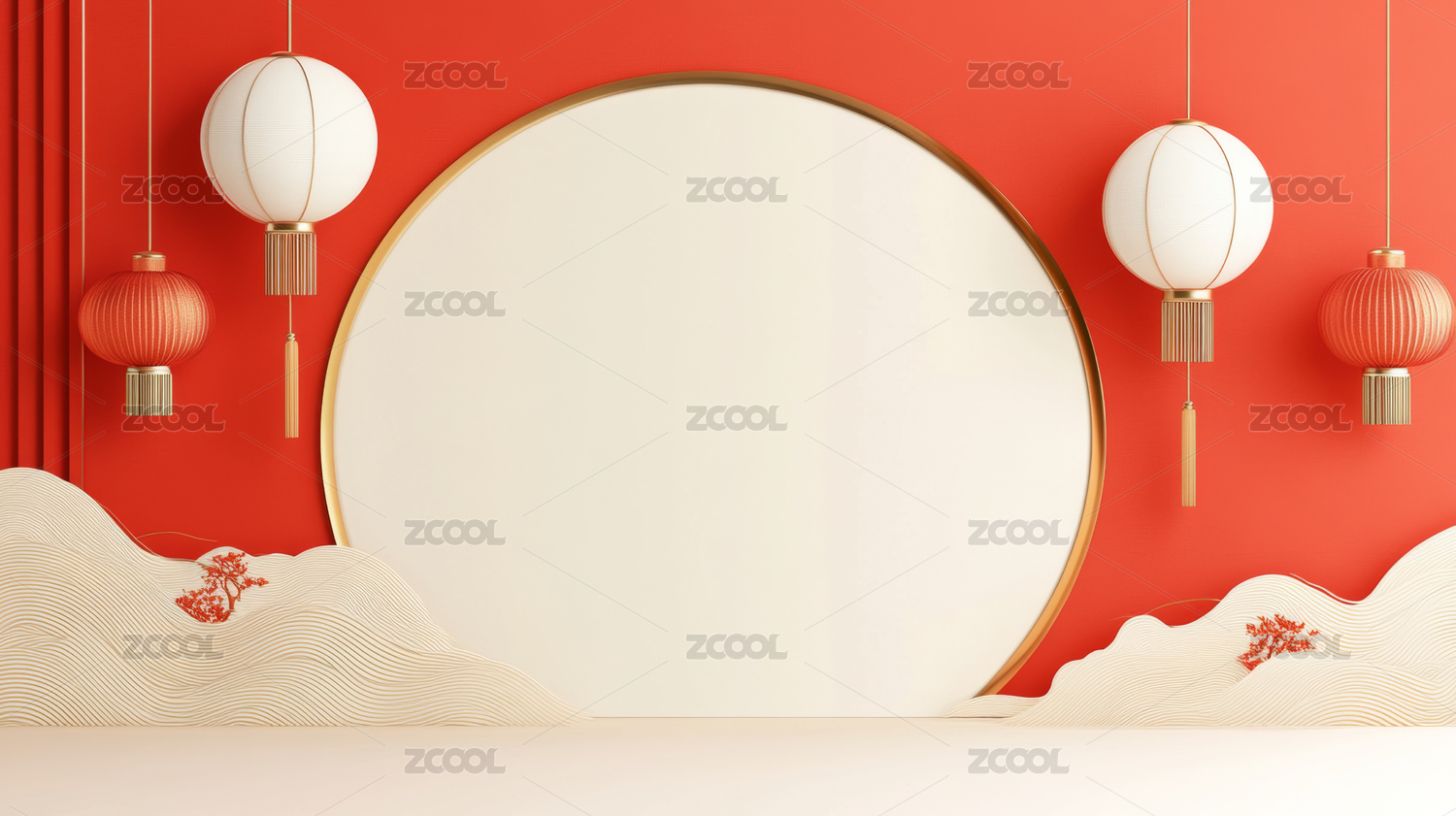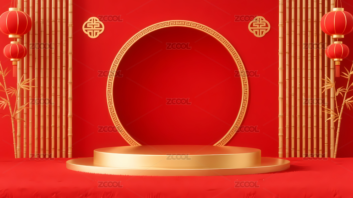 红色背景圆形舞台春节装饰