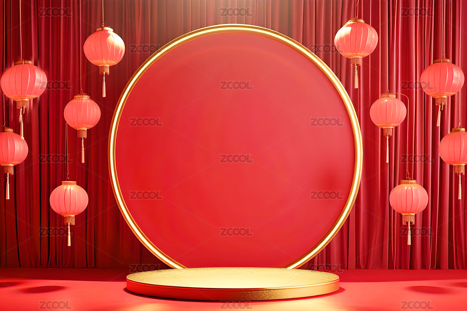 红色喜庆中国灯笼圆台电商展示舞台