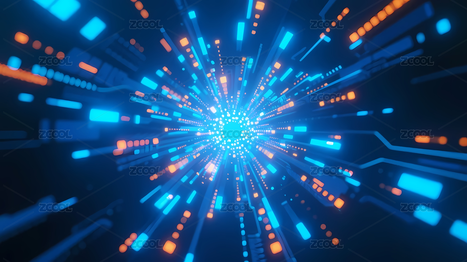 蓝橙隧道与光点