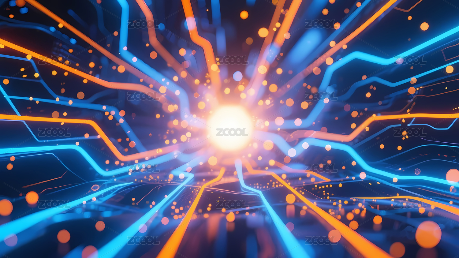 深蓝背景蓝橙电路板