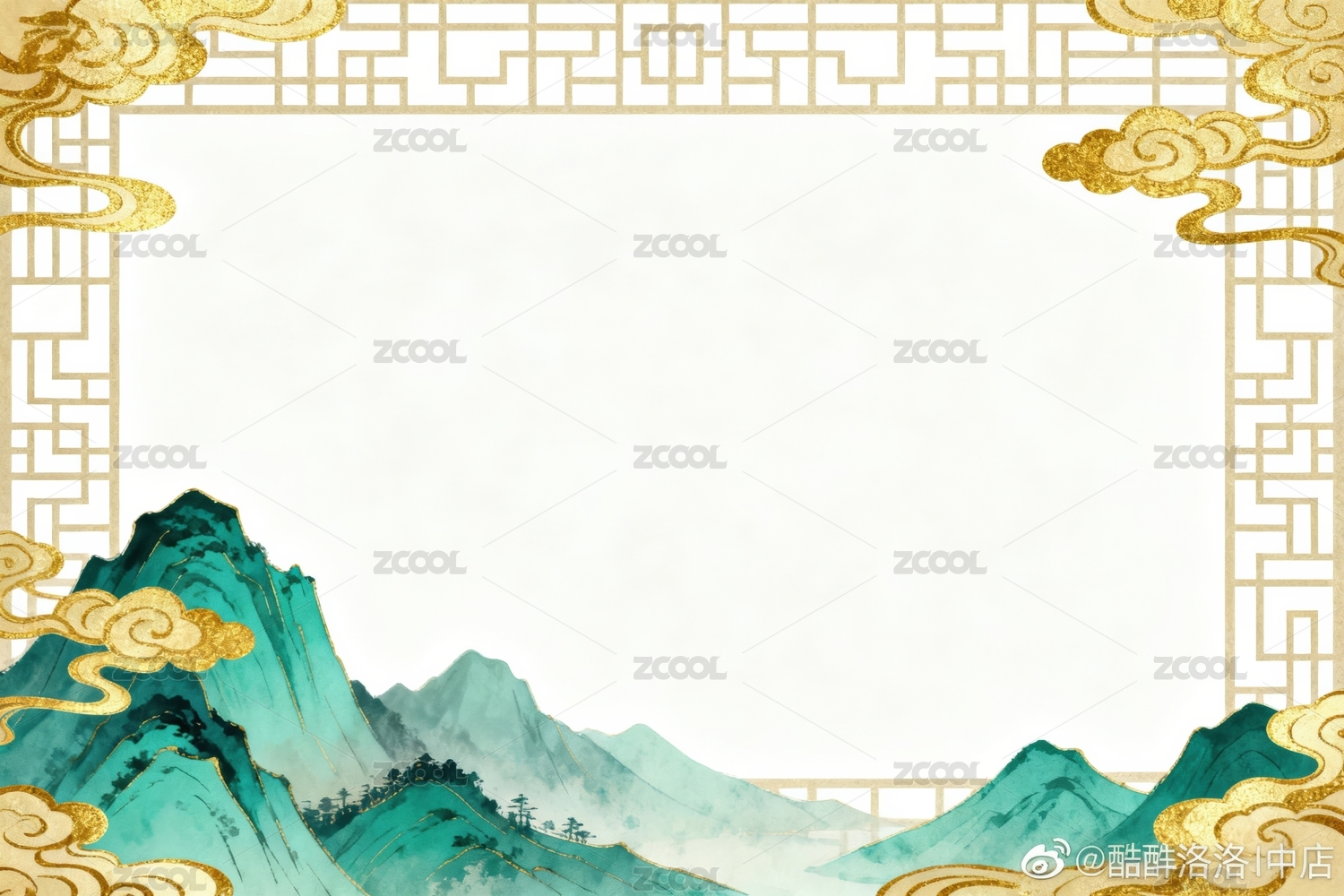 山水,传统,窗户,艺术,金色,云纹,边框,图案,古典,装饰
