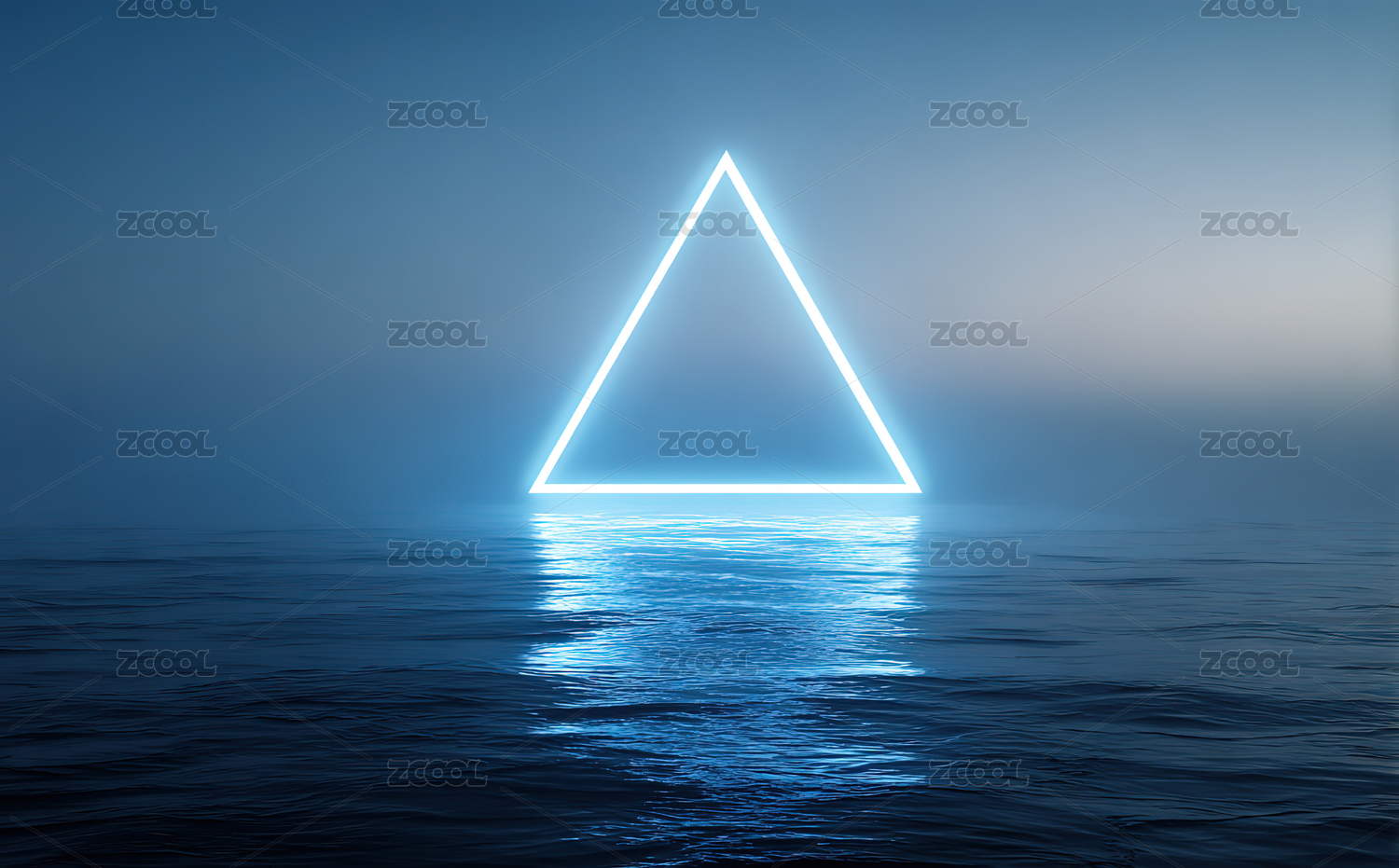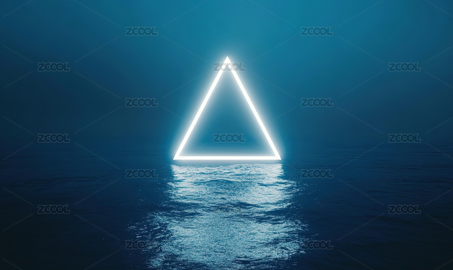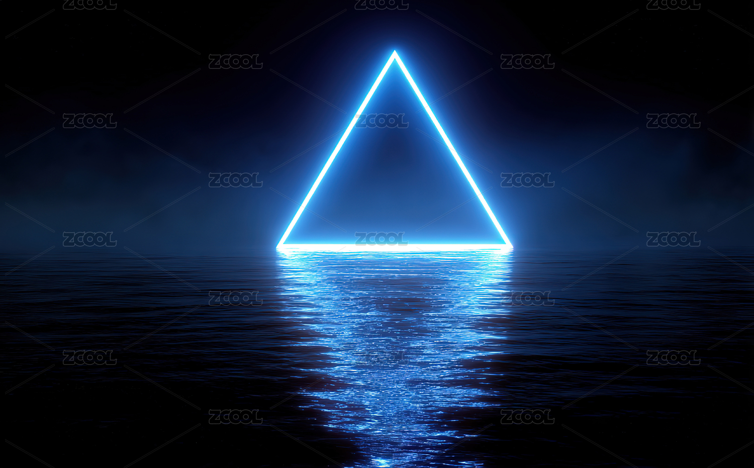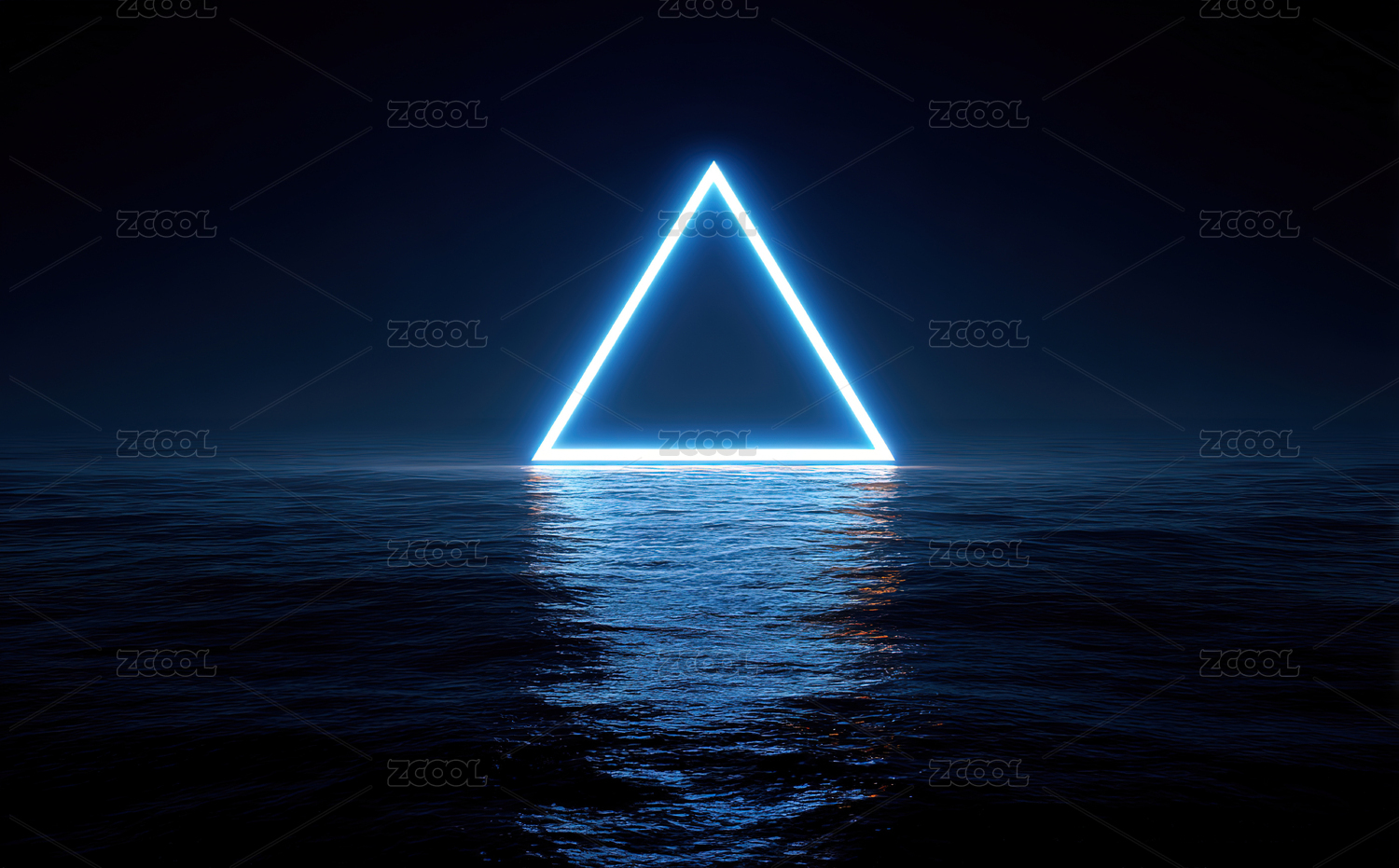 平静水面上的霓虹三角形