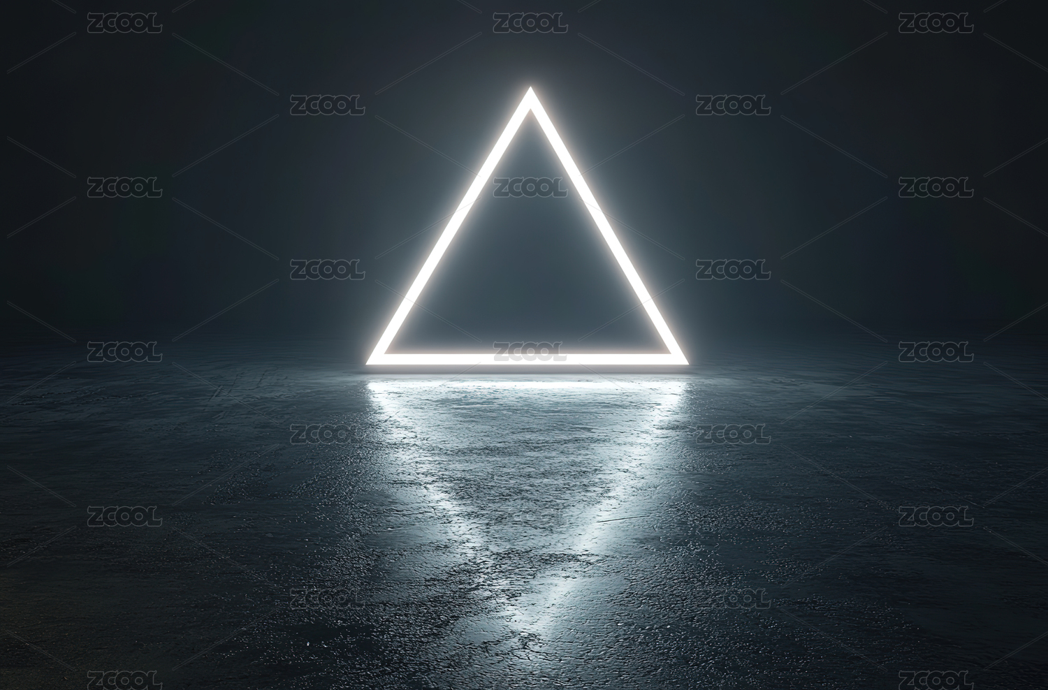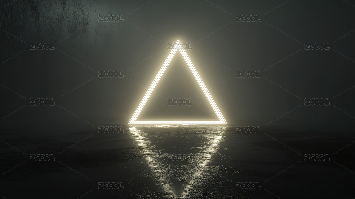 发光三角形倒映水面