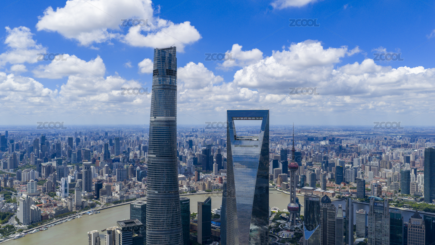 航拍上海浦东新区陆家嘴三件套城市天际线