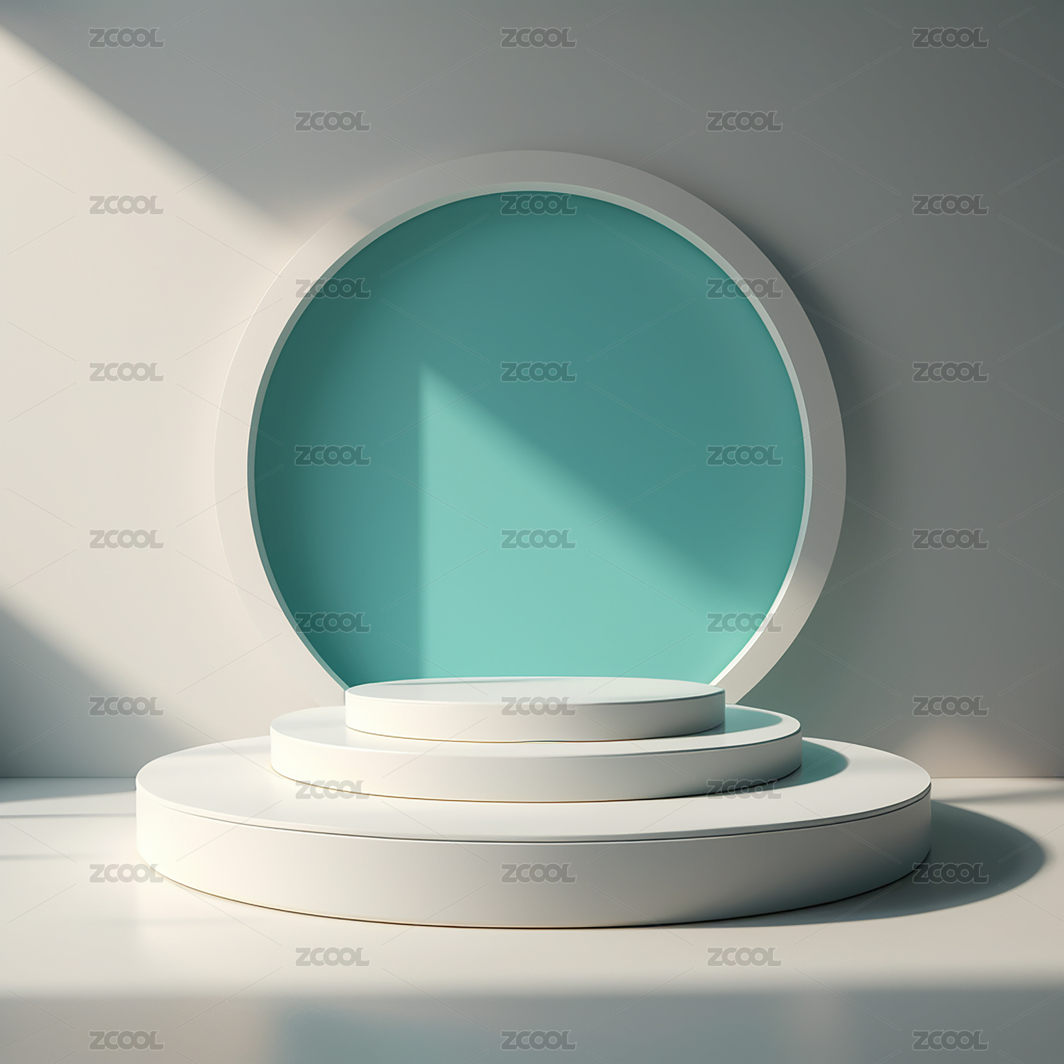 简约绿色圆台与光影效果