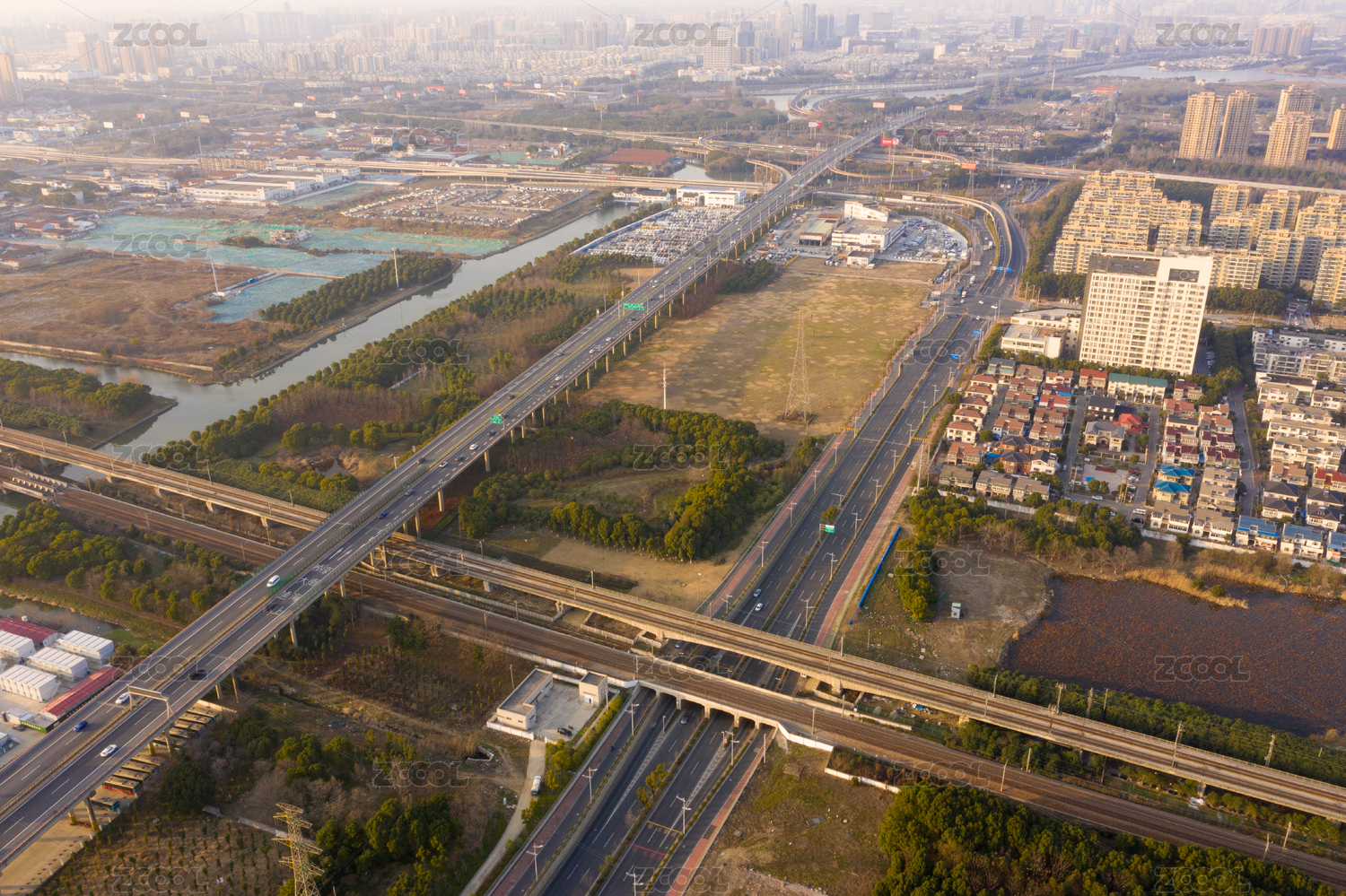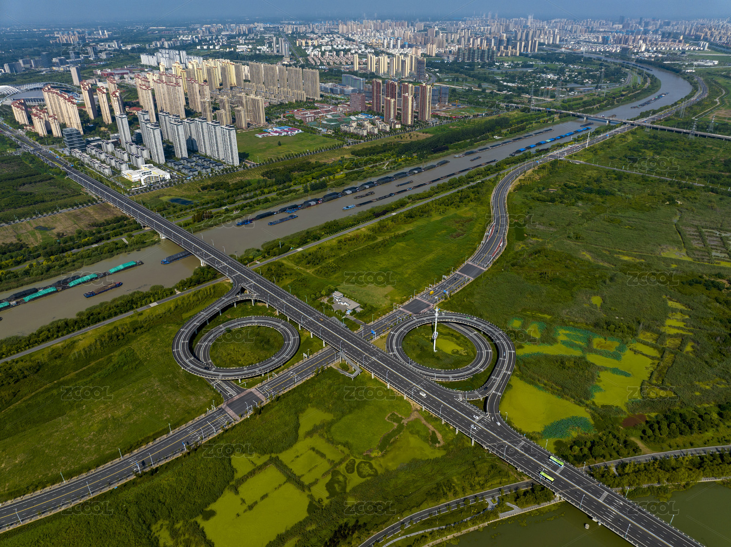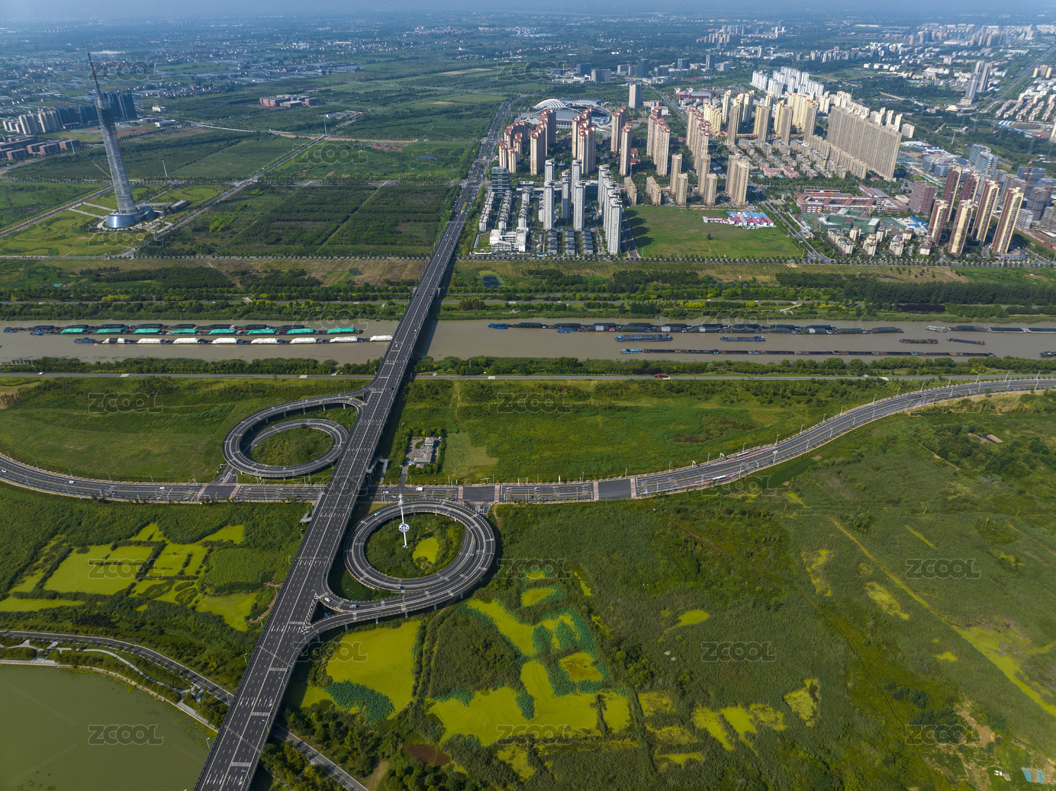 江苏苏州石湖景区蠡墅立交桥航拍城市风光