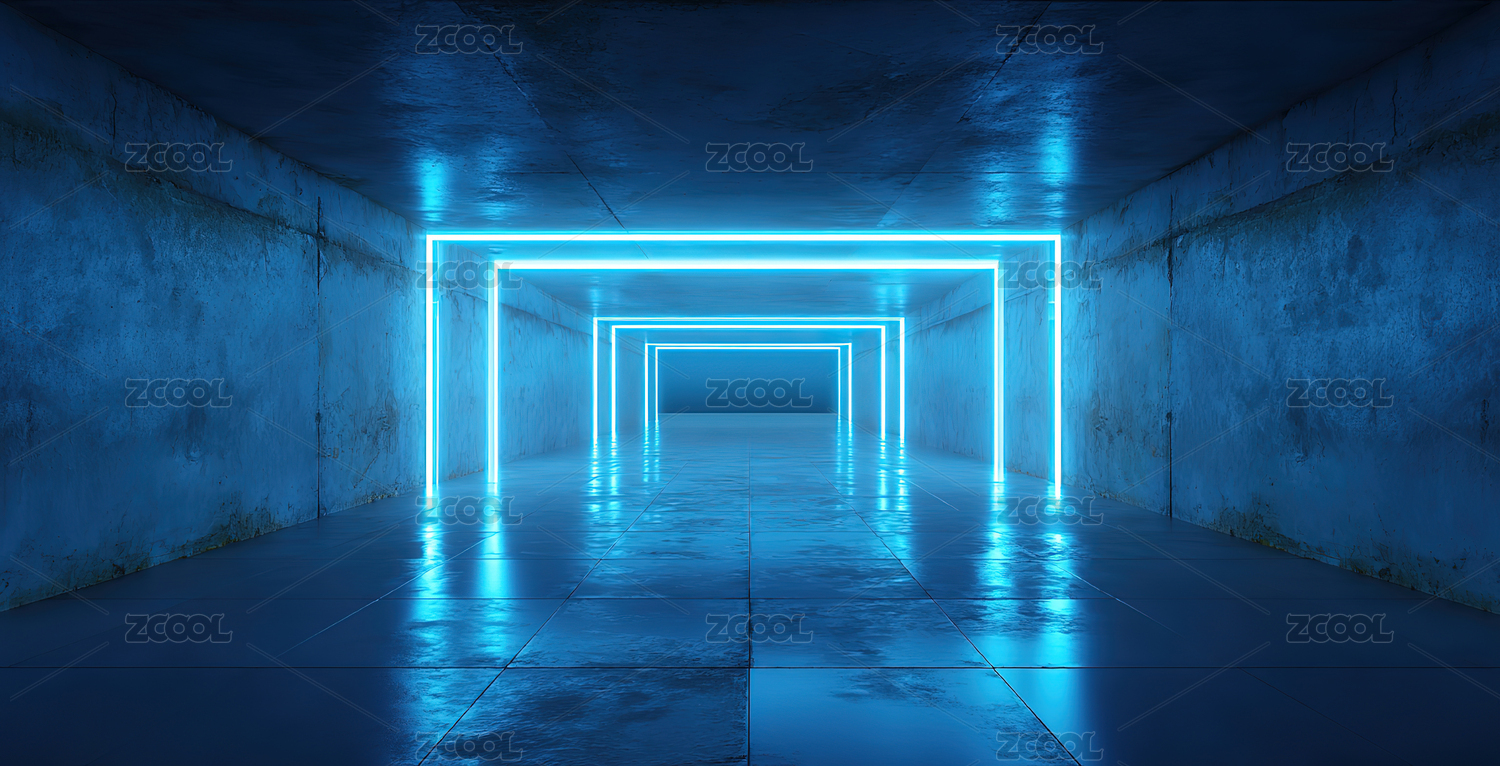 霓虹灯线条场景,舞台背景赛博科技氛围感