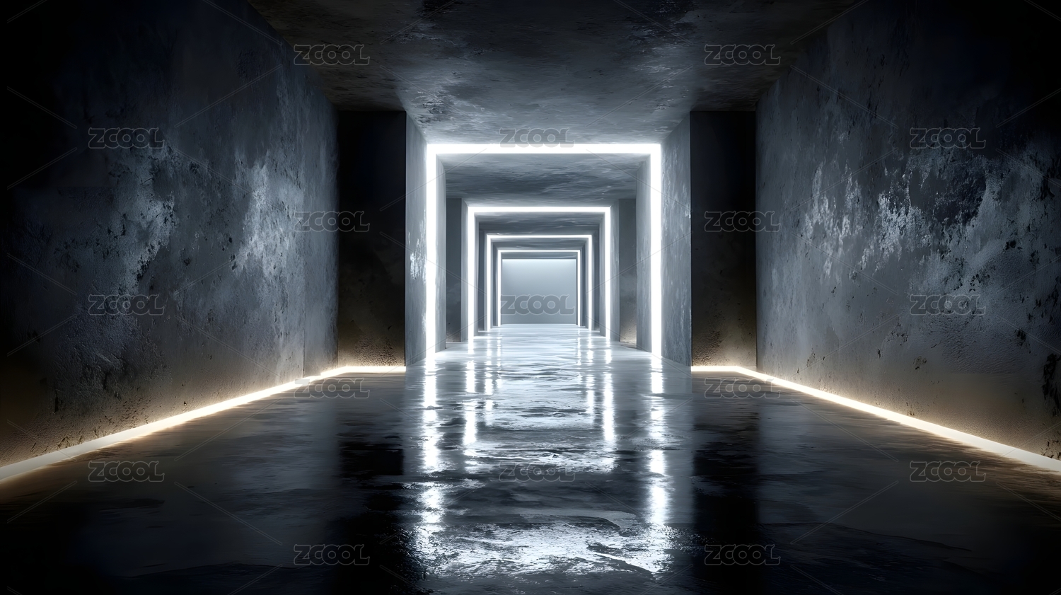 光线,反射,墙壁,光影,空间,冷色调,线条,蓝色,简洁,霓虹