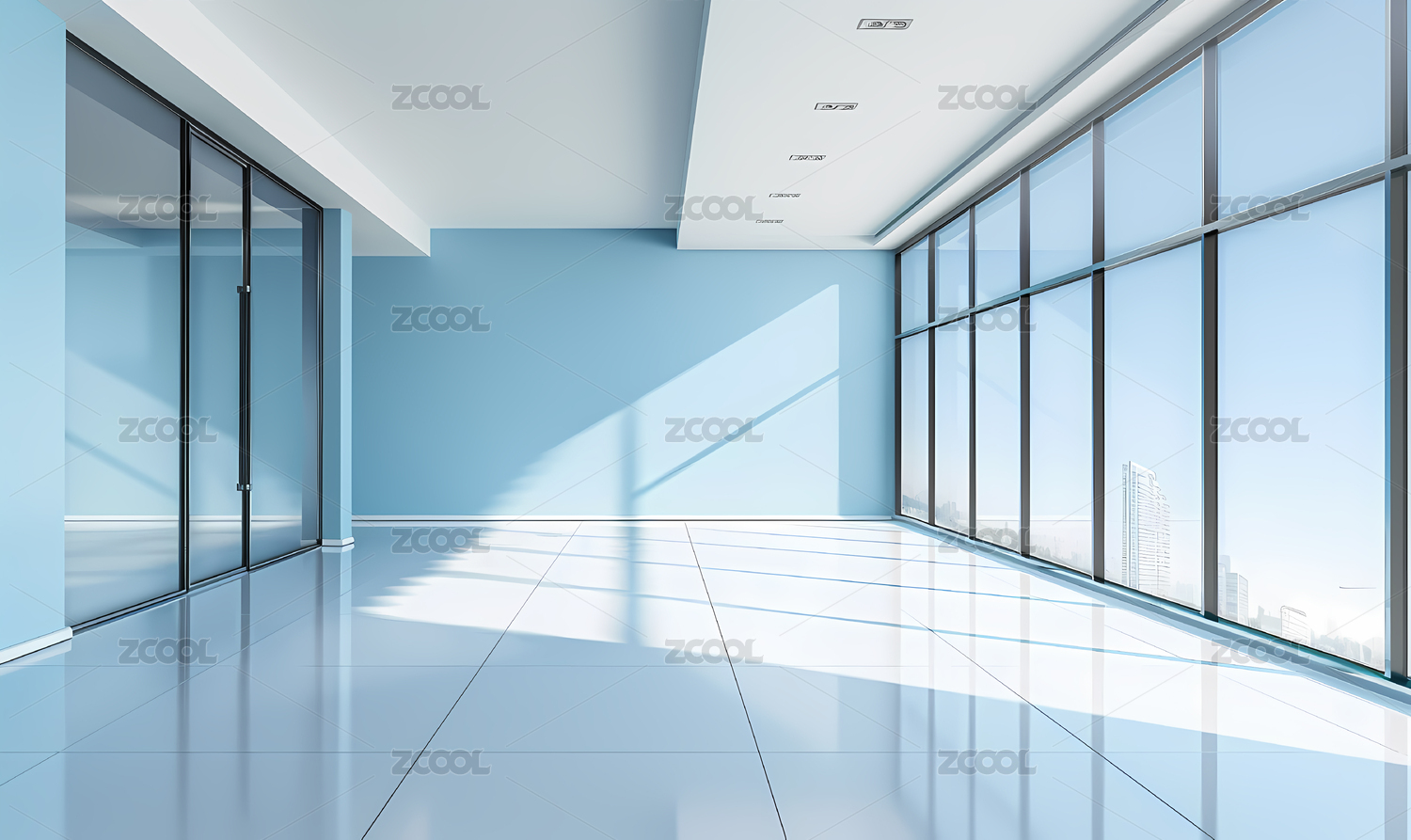 3D商务简约窗户玻璃空旷地面背景