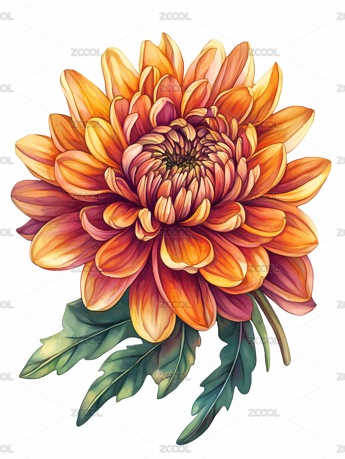一幅令人惊叹的精致水彩画,描绘了各种菊花