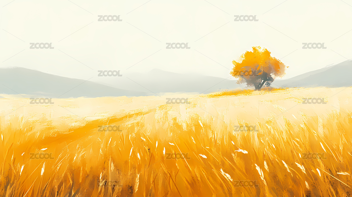 金黄麦田与孤独身影