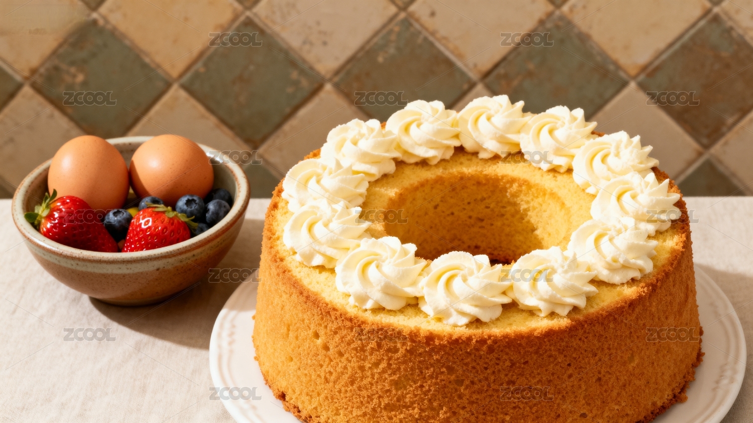 奶油蛋糕与新鲜水果食材