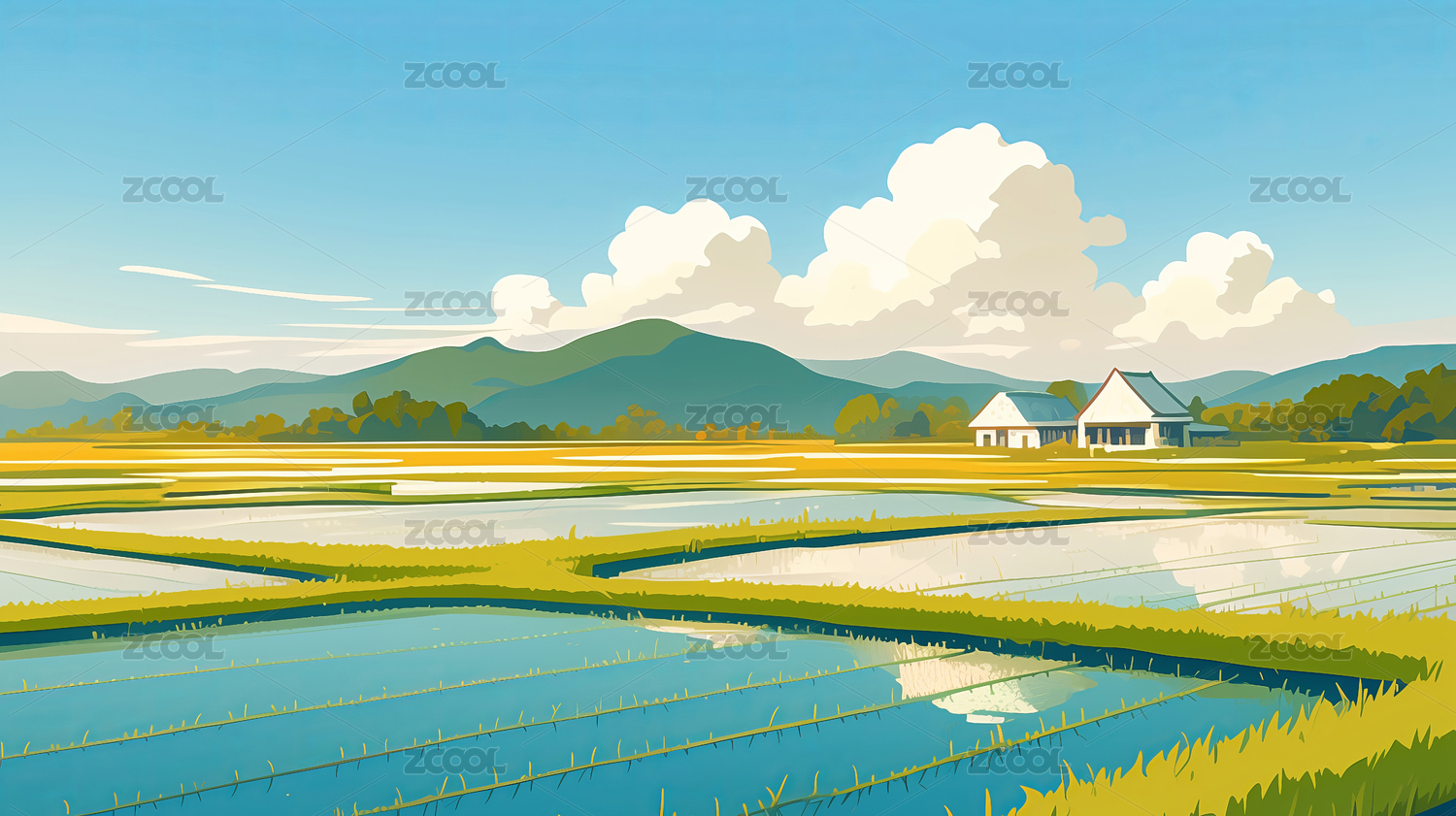 插画,绘画,艺术,自然,美丽,风景,旅游,亚洲,旅行,景色