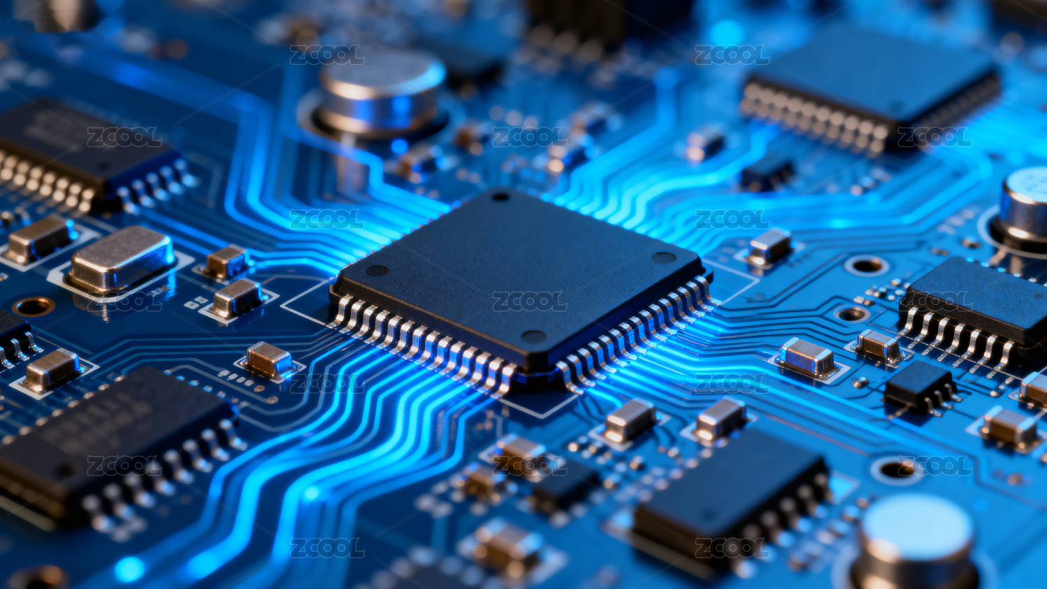 电路板核心部件特写蓝光科技感