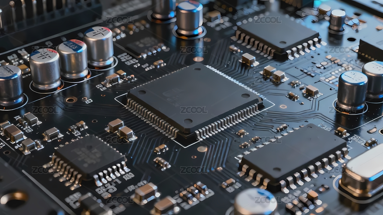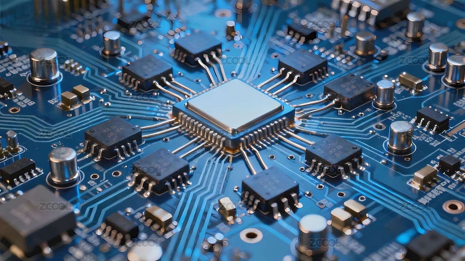蓝色电路板与处理器芯片
