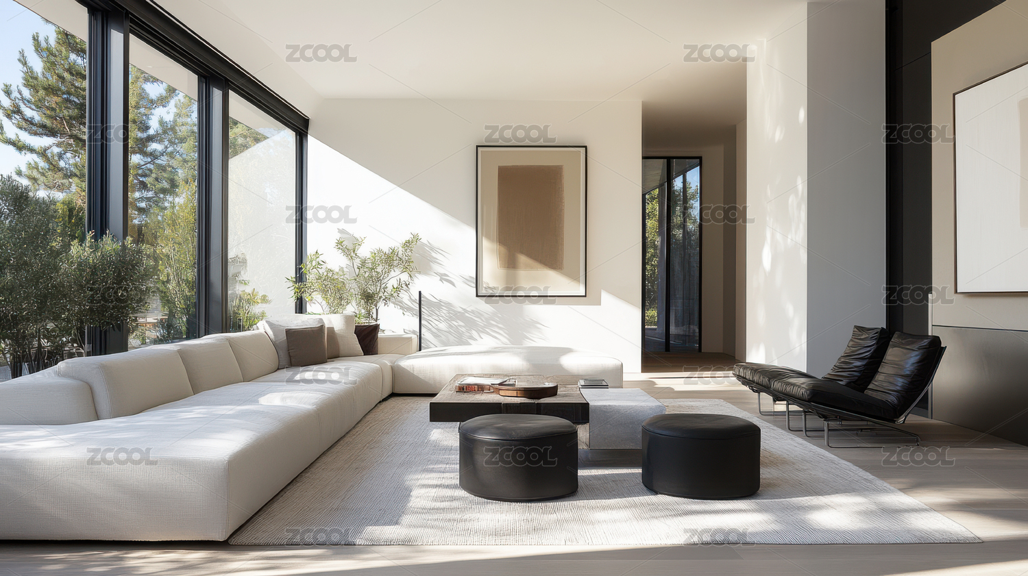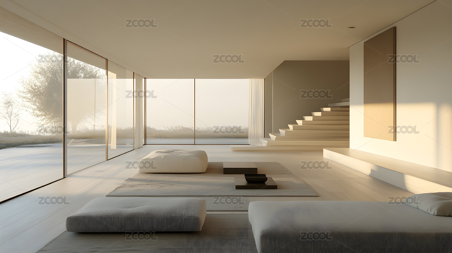 设计,现代,绿色,宁静,潮流,光线,极简,空间,客厅,窗户