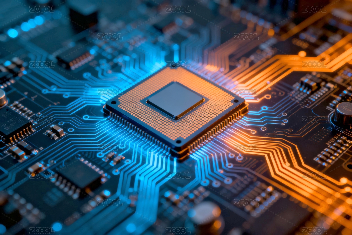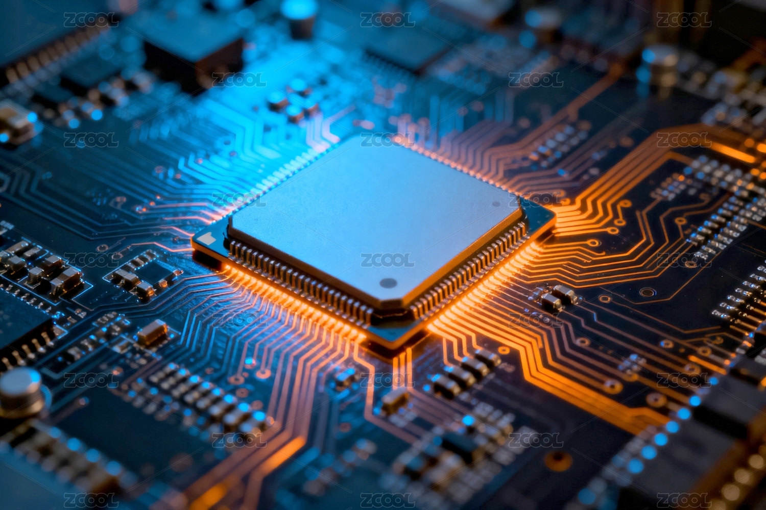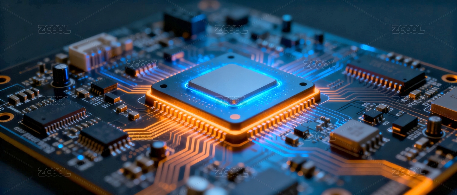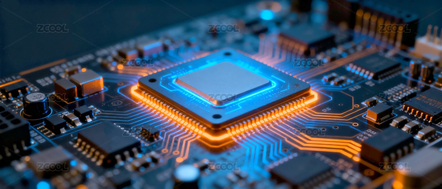 芯片蓝橙质感科技电路场景