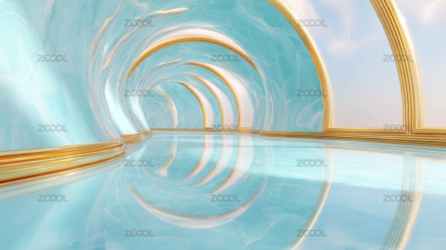 蔚蓝大理石拱形通道