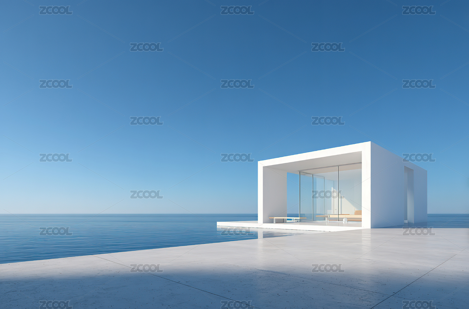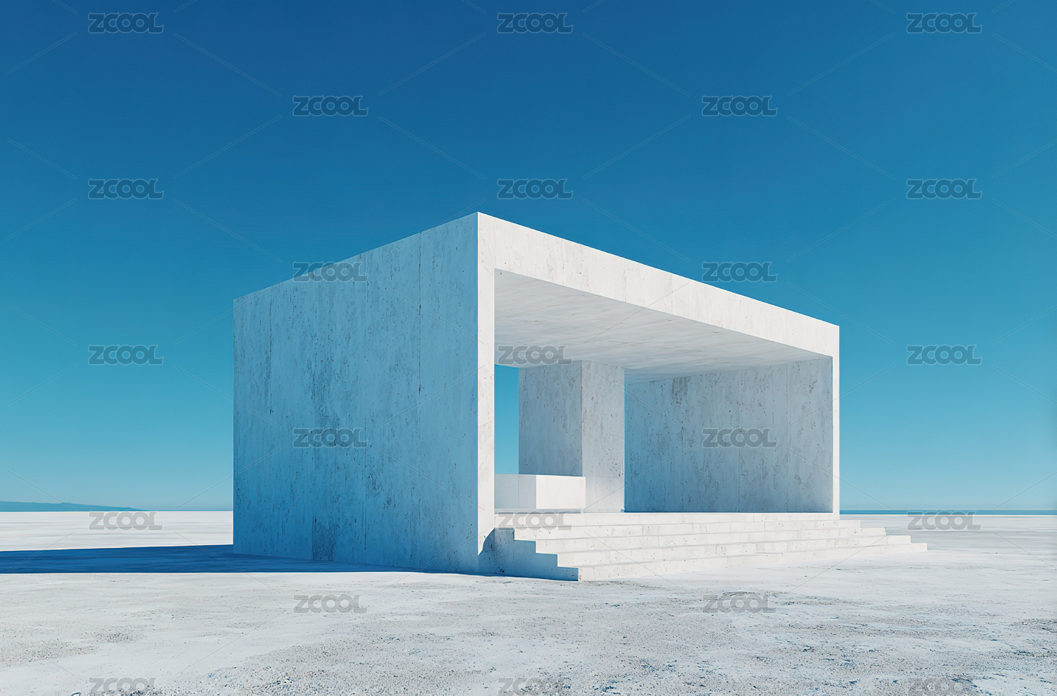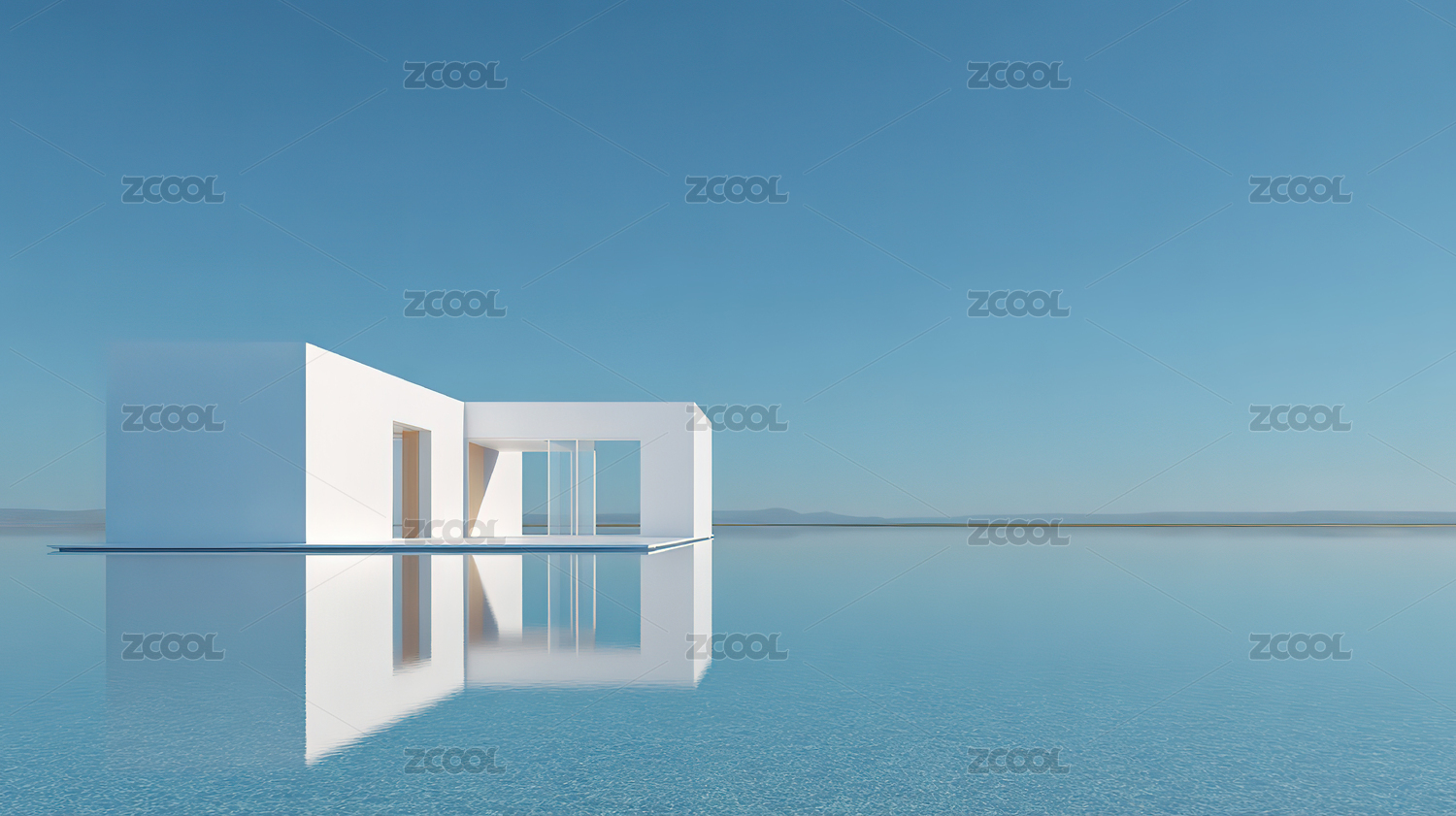 空间,现代,白色,建筑,反射,天空,简洁,几何,结构,极简