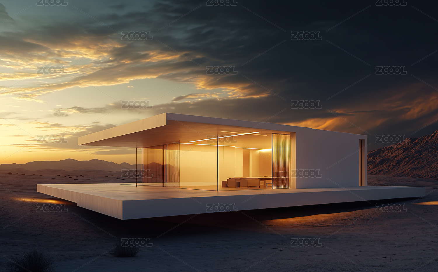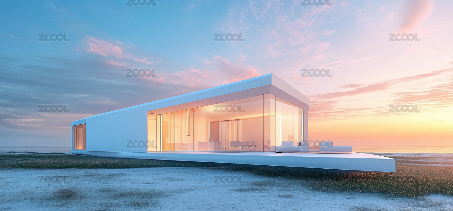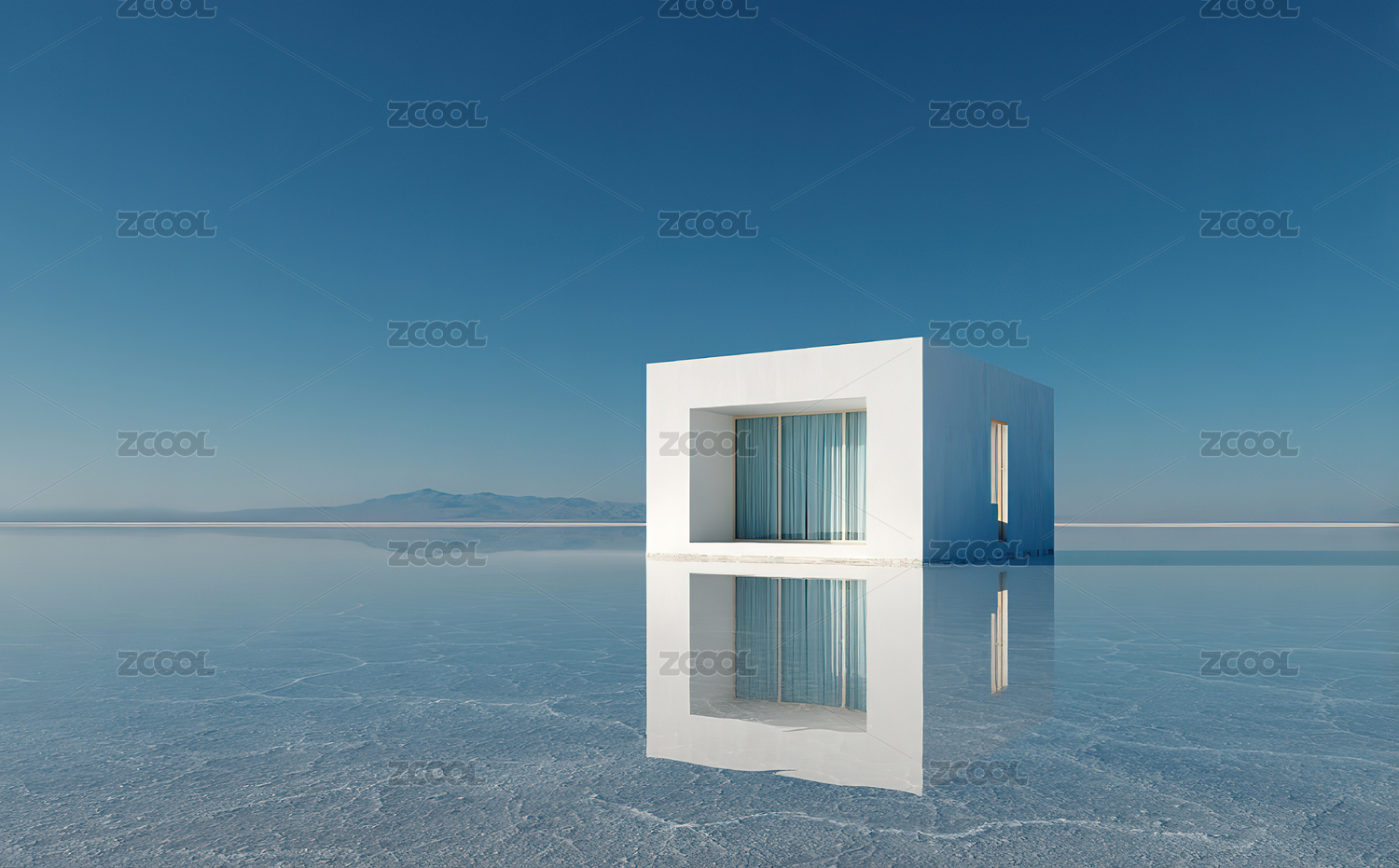 空间,现代,白色,建筑,反射,天空,简洁,几何,结构,极简