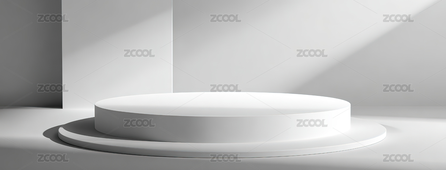 白色圆形展台与光影背景
