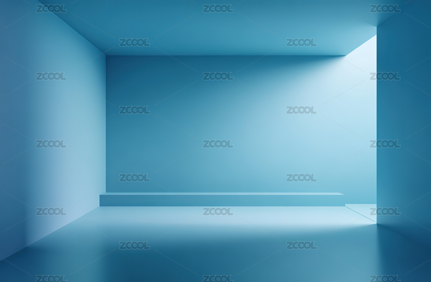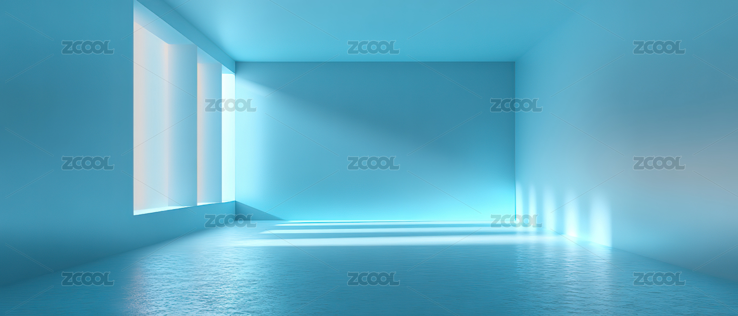 蓝色空旷房间光影效果