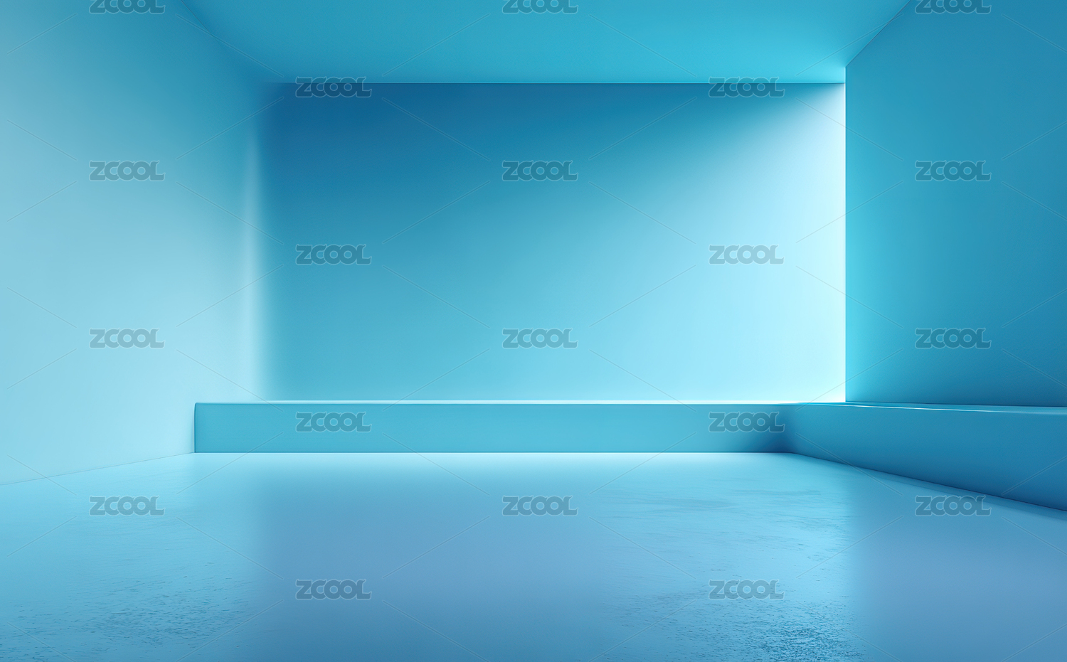 蓝色空房间内部场景