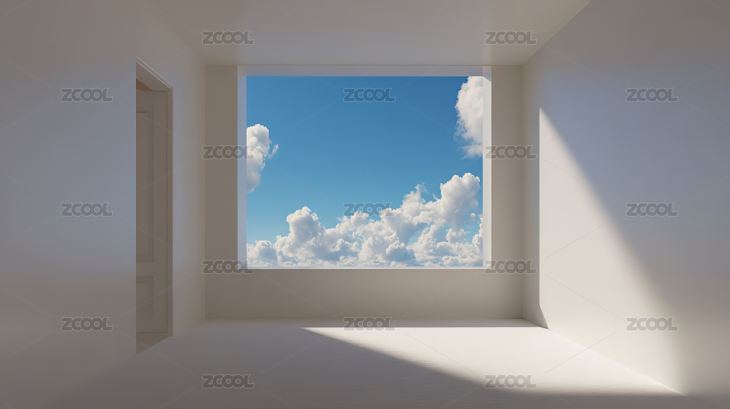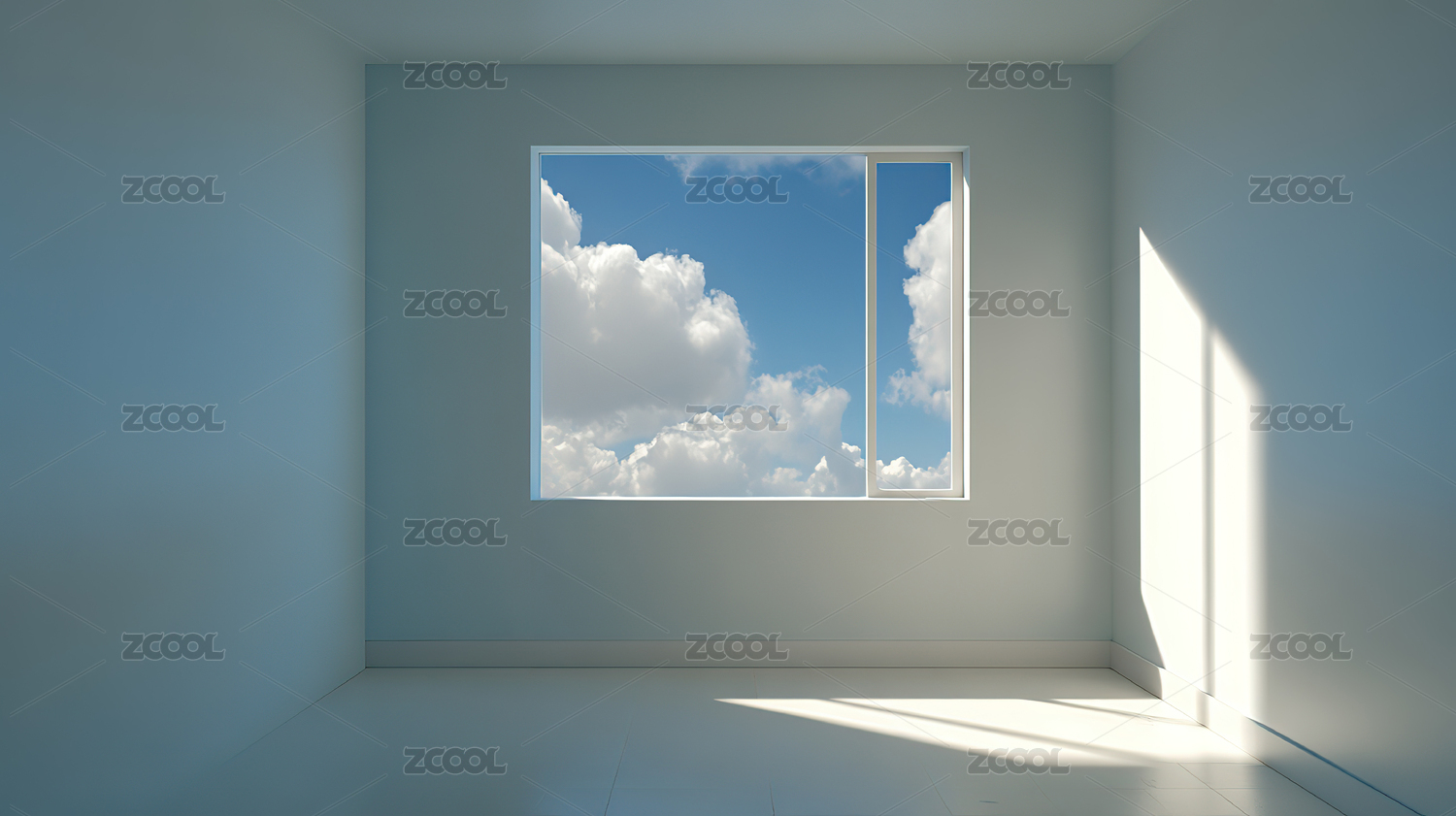 空旷房间内的窗外白云