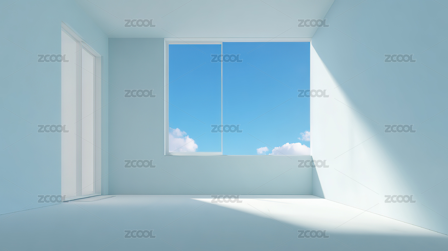 空旷房间内的窗户与蓝天白云