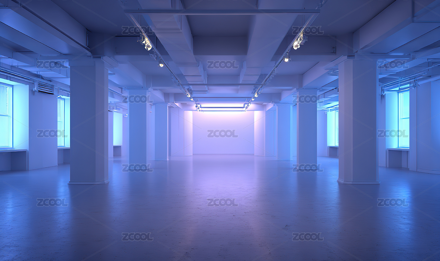 空旷的蓝色调室内空间