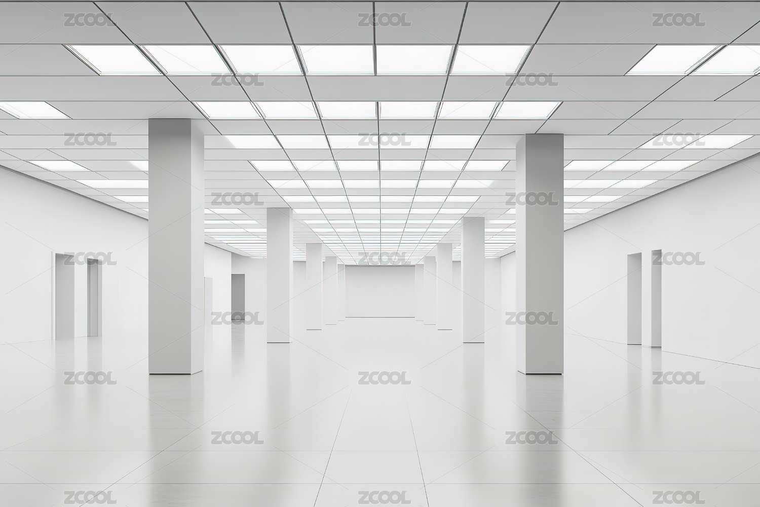 白色,空旷,室内,设计,现代,空间,对称,灯光,天花板,照明