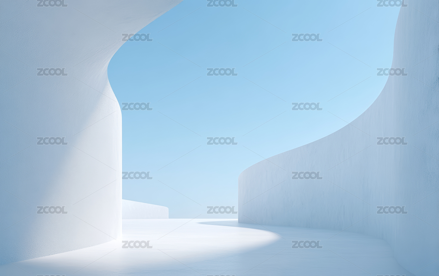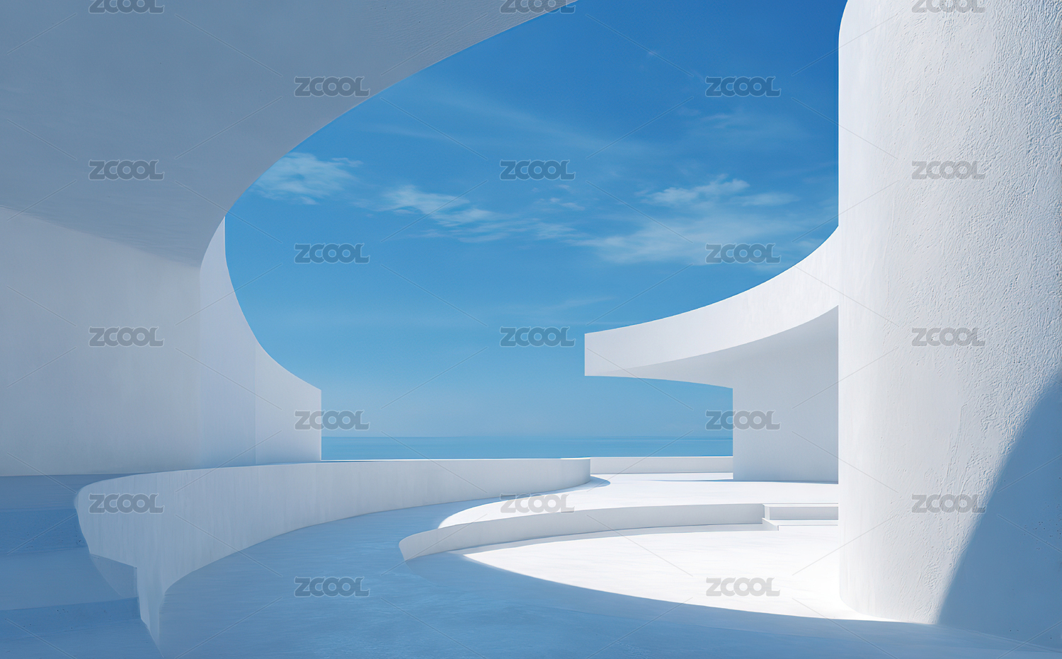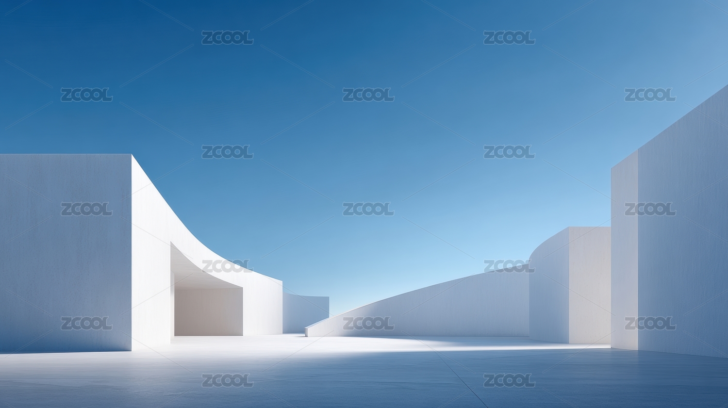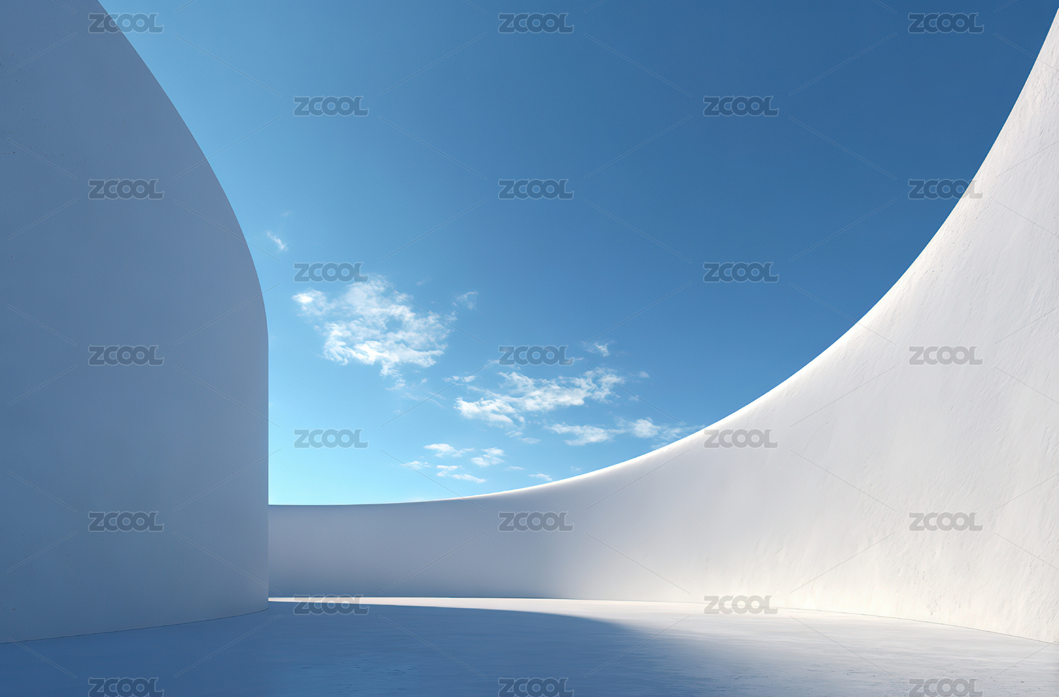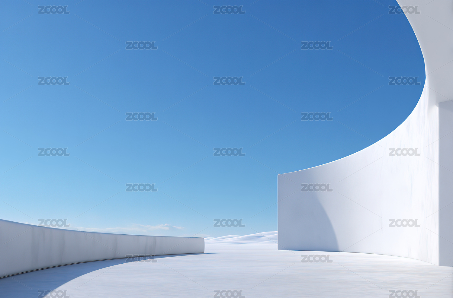 白色流线建筑与蓝天的现代艺术空间