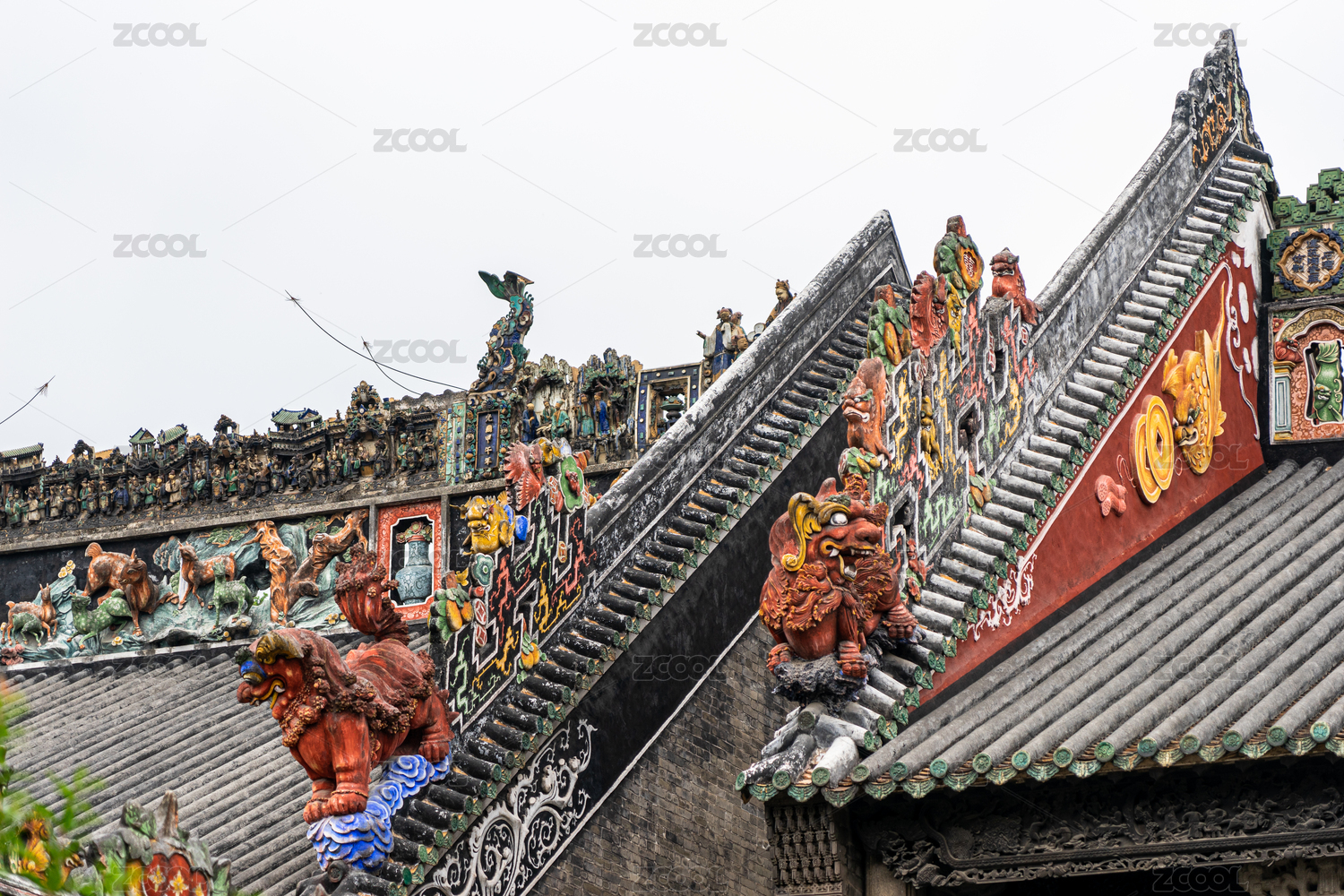 中国广州陈家祠岭南建筑屋顶灰塑陶塑