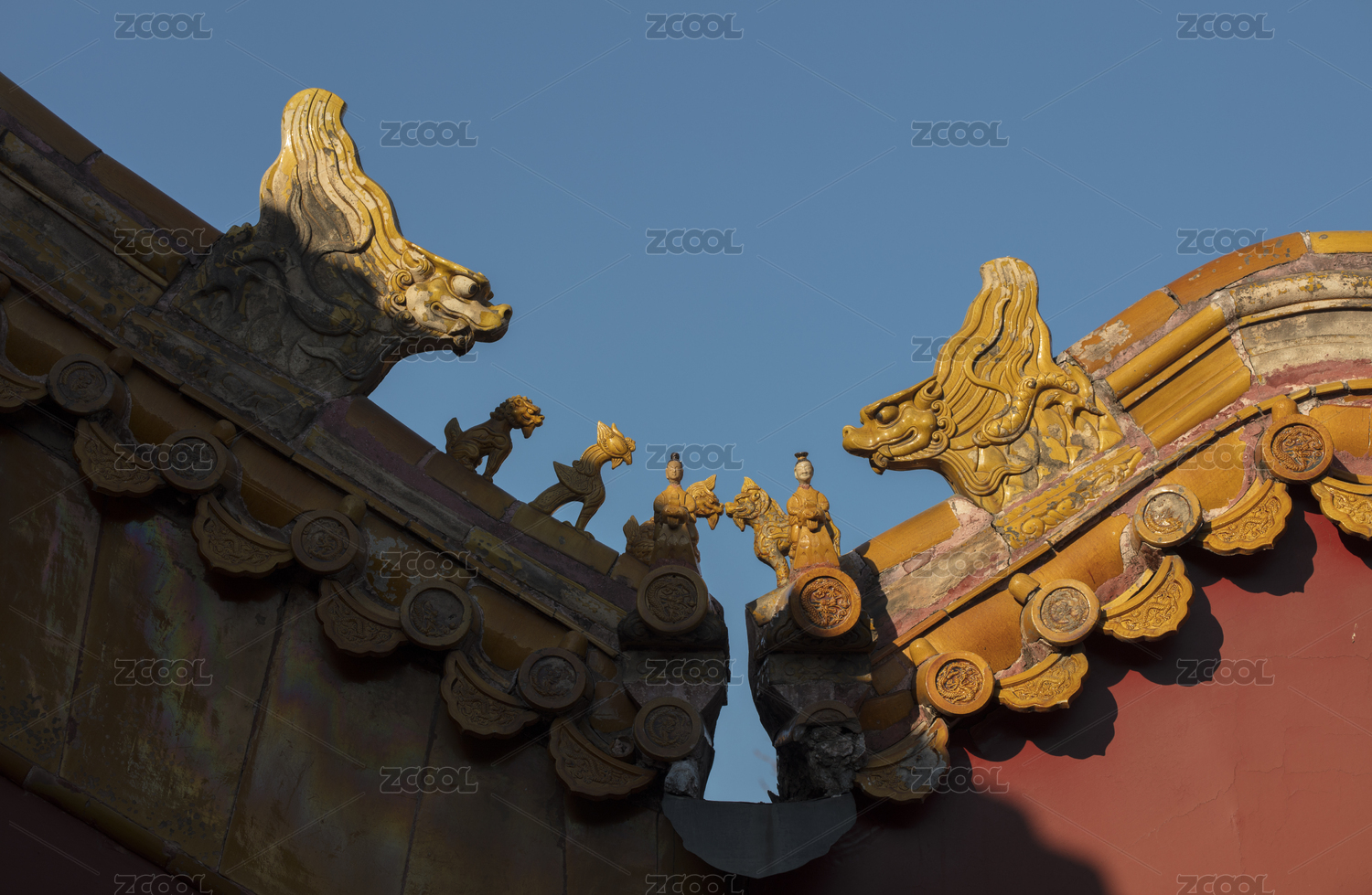 北京天坛宫殿脊兽与红墙