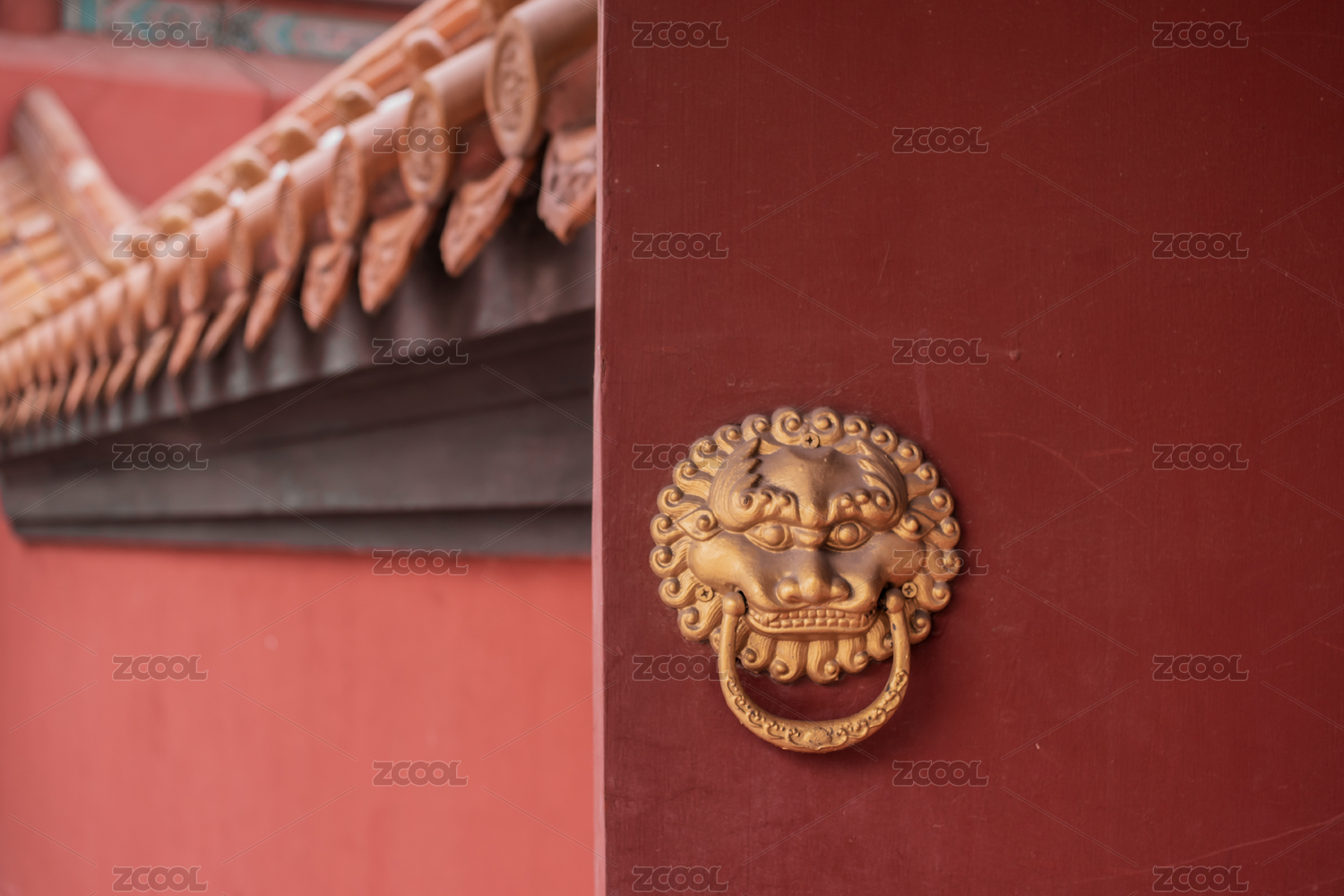 北京鼓楼红色大门和狮子铺首门环