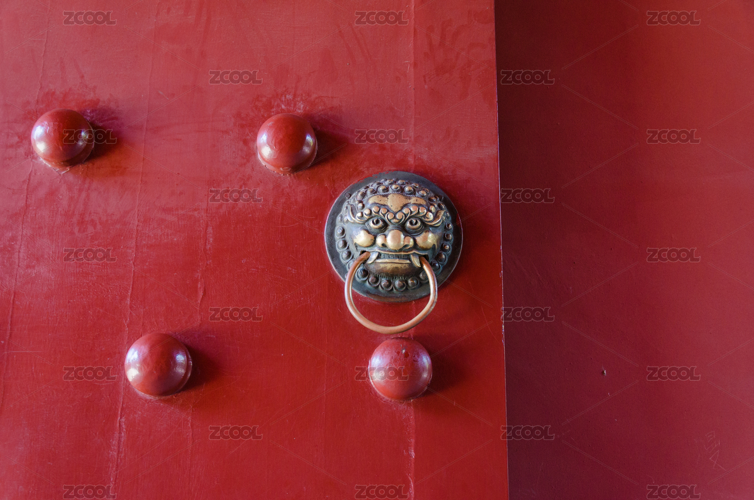 红色墙上的青铜门环