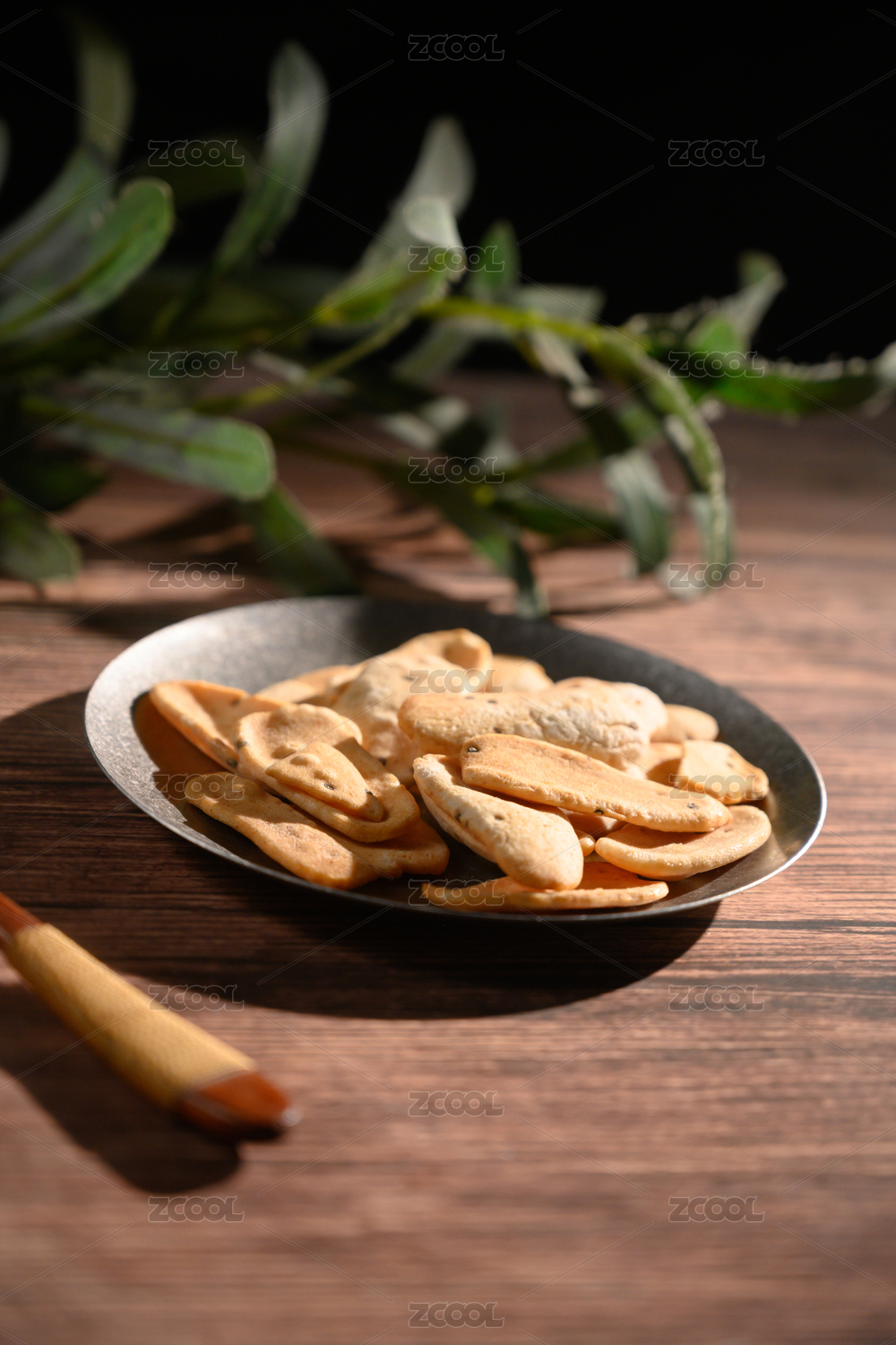 桌面上的盘子里的美味可口的麻叶子