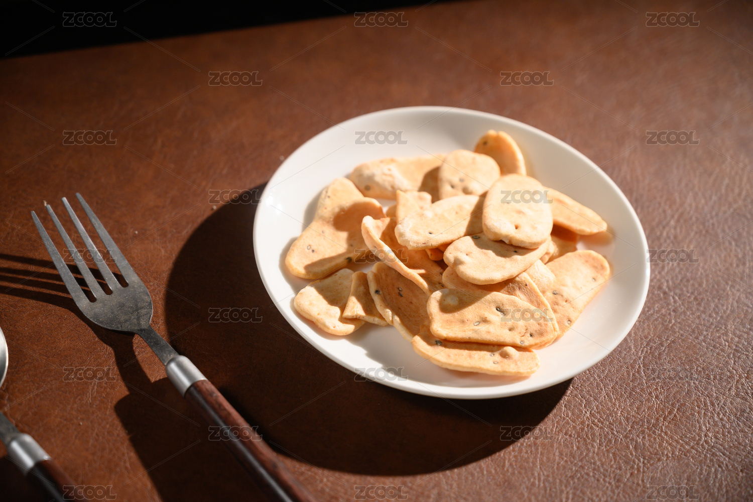 桌面上的盘子里的美味可口的虾片