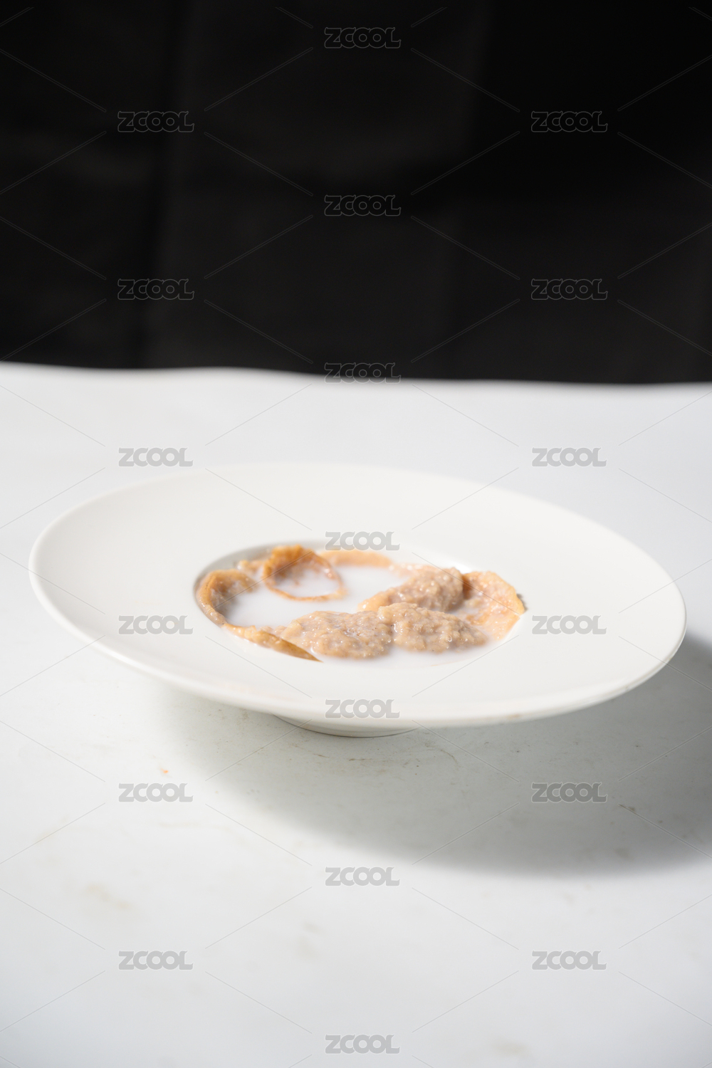 桌面上的碗里的美味可口的牛奶炖桃胶