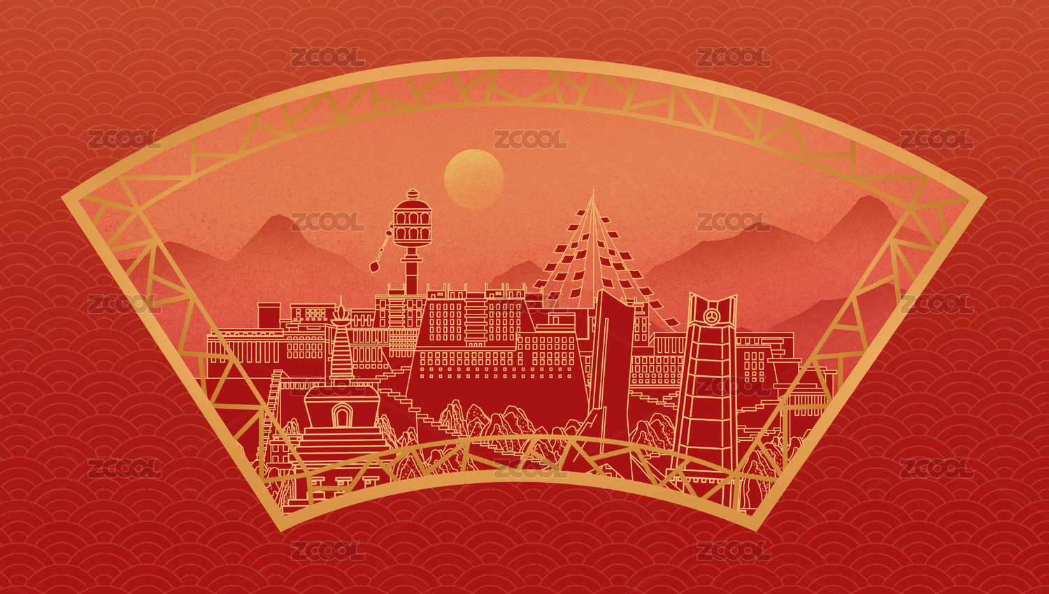 中国西藏中国风新年红色中秋扇形古典窗户