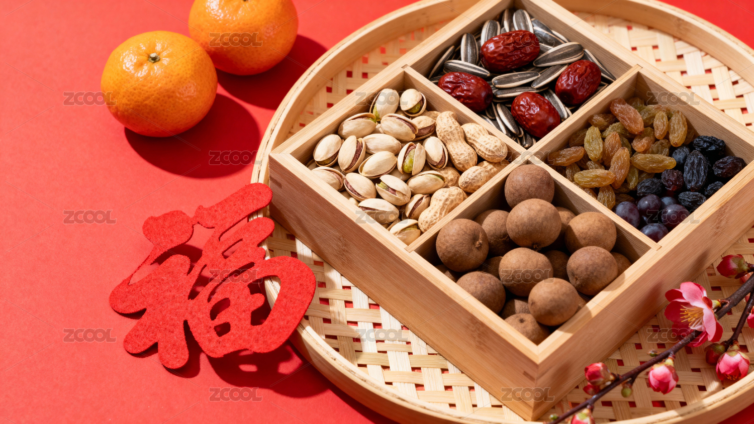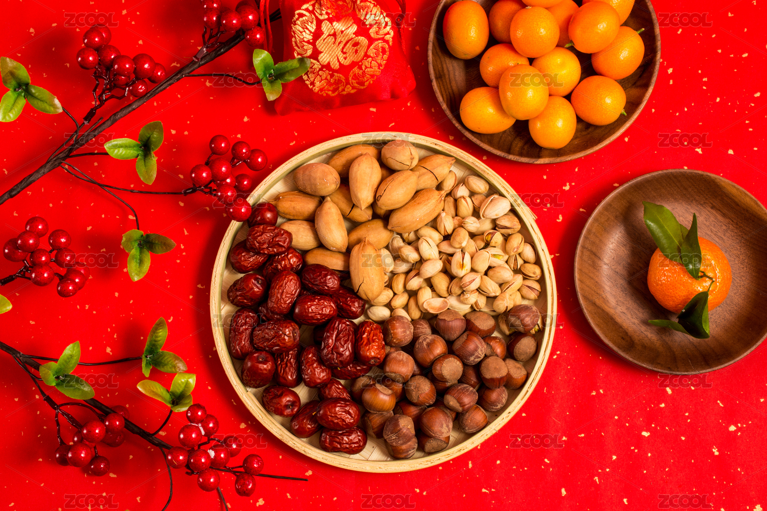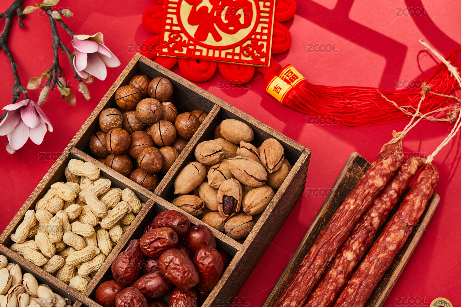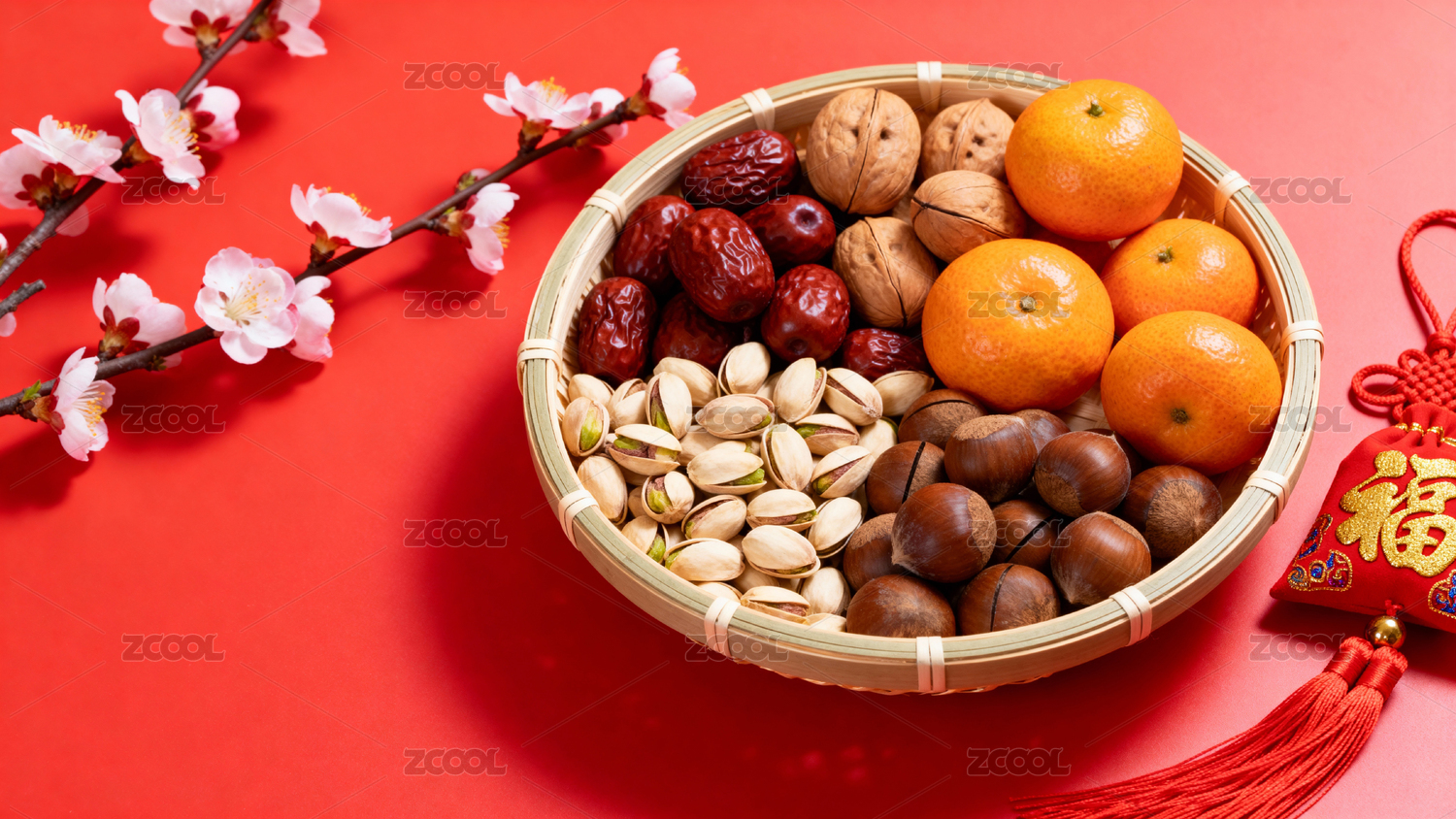 新年背景置办年货坚果零食瓜子花生压岁钱