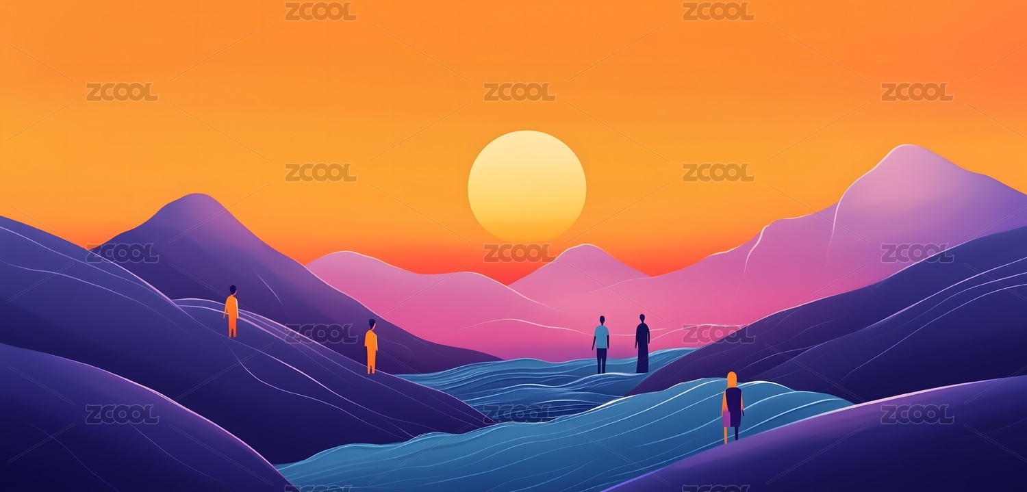 黄色,艺术,温暖,色彩,橙色,蓝色,天空,光影,自然,人物