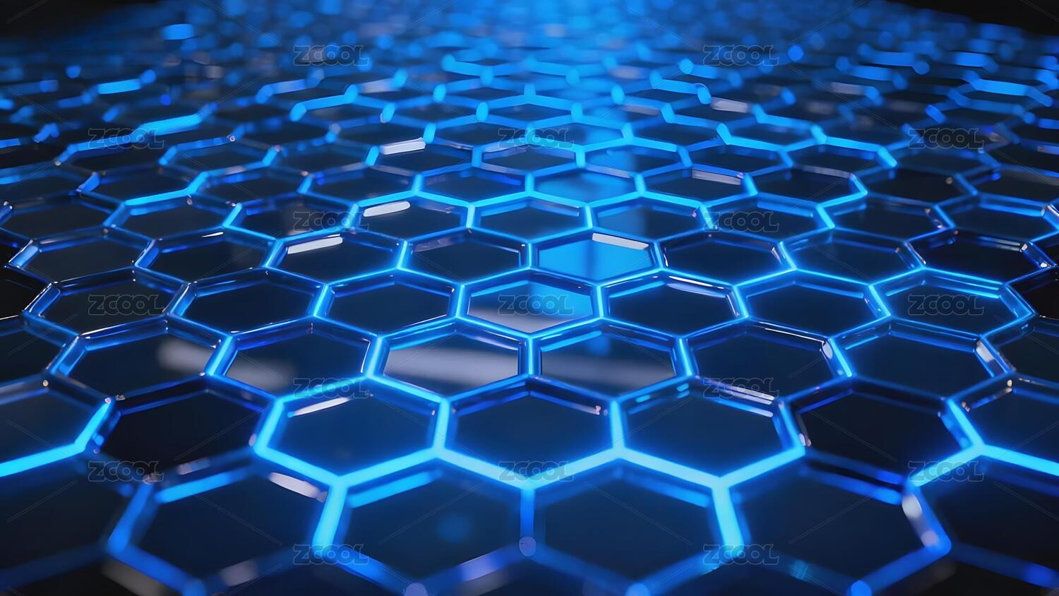 蓝色发光六边形网格结构