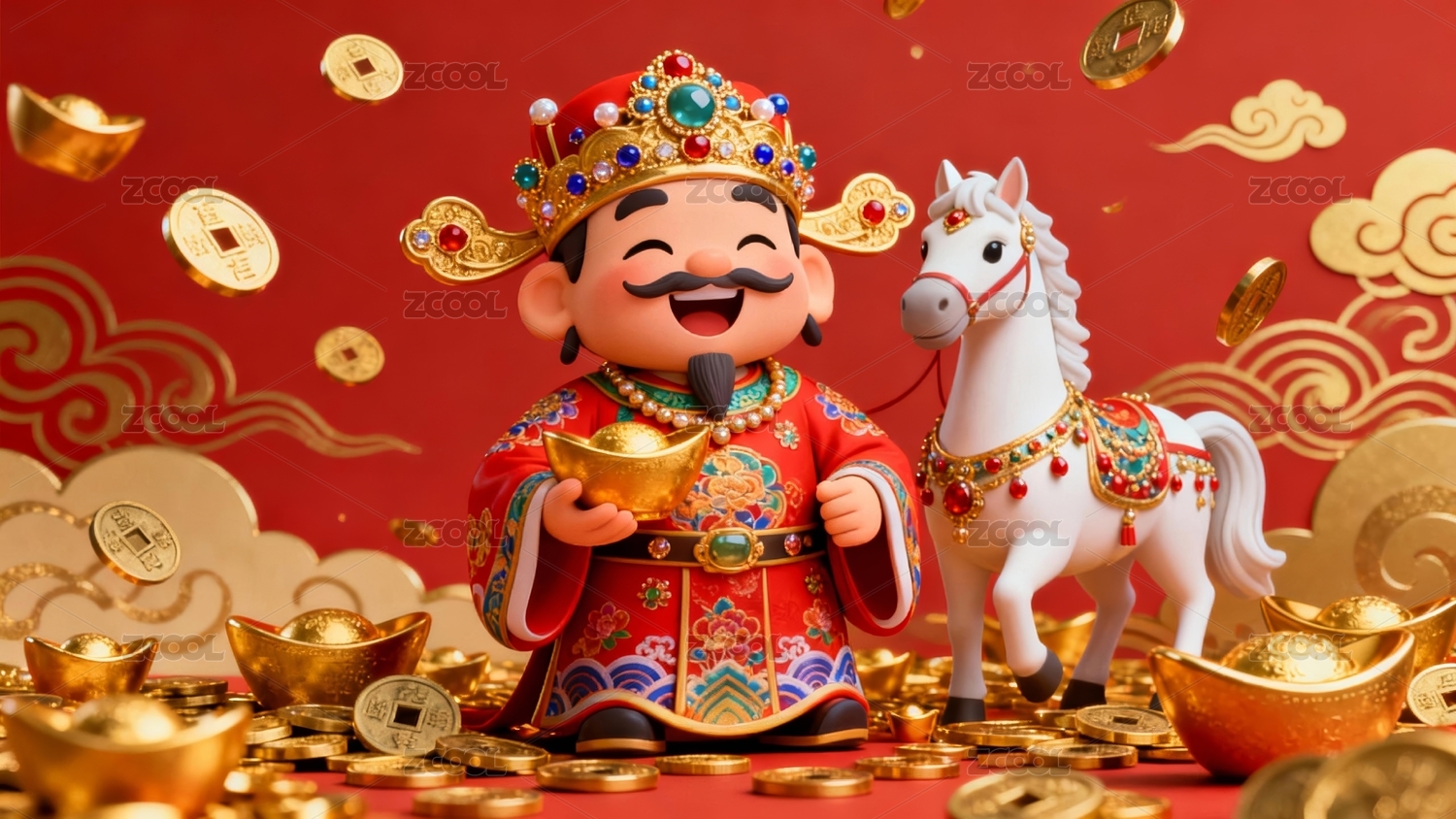 财神金马喜庆感新年招财场景
