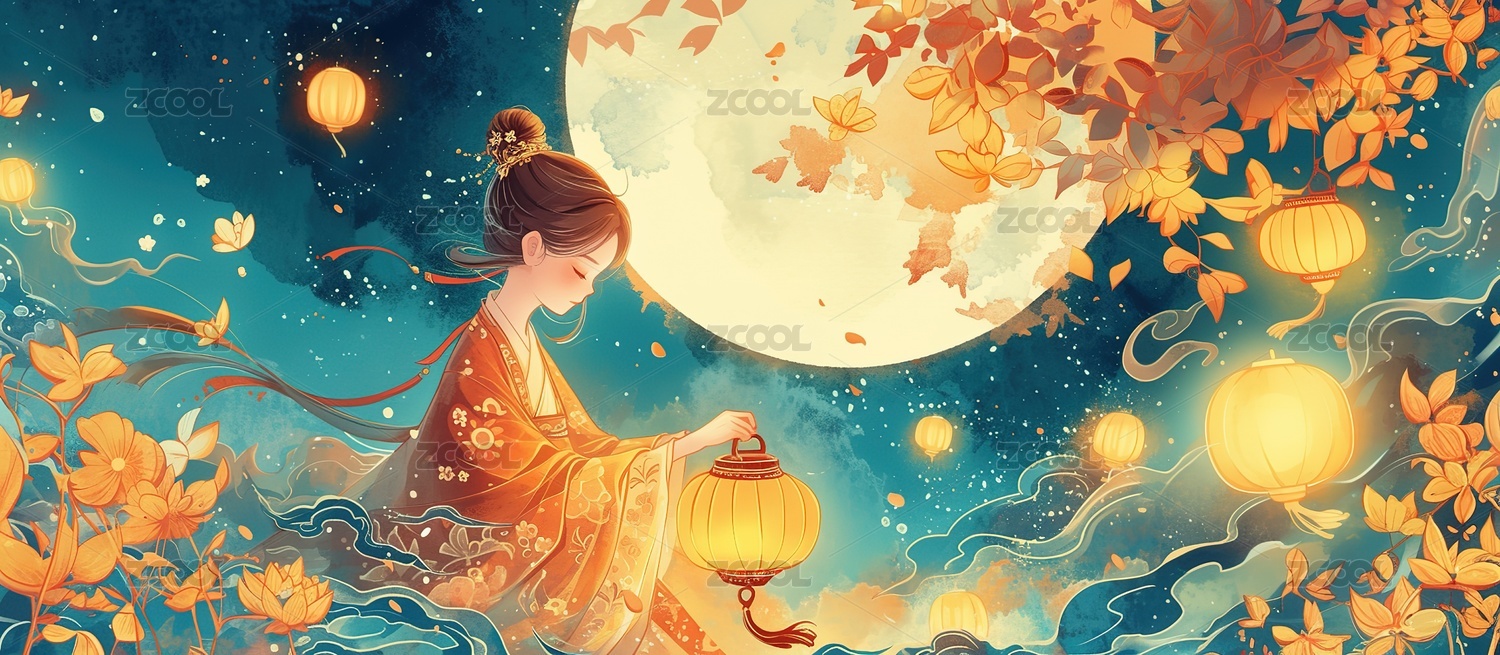 月下嫦娥的唯美意境中秋佳节插画