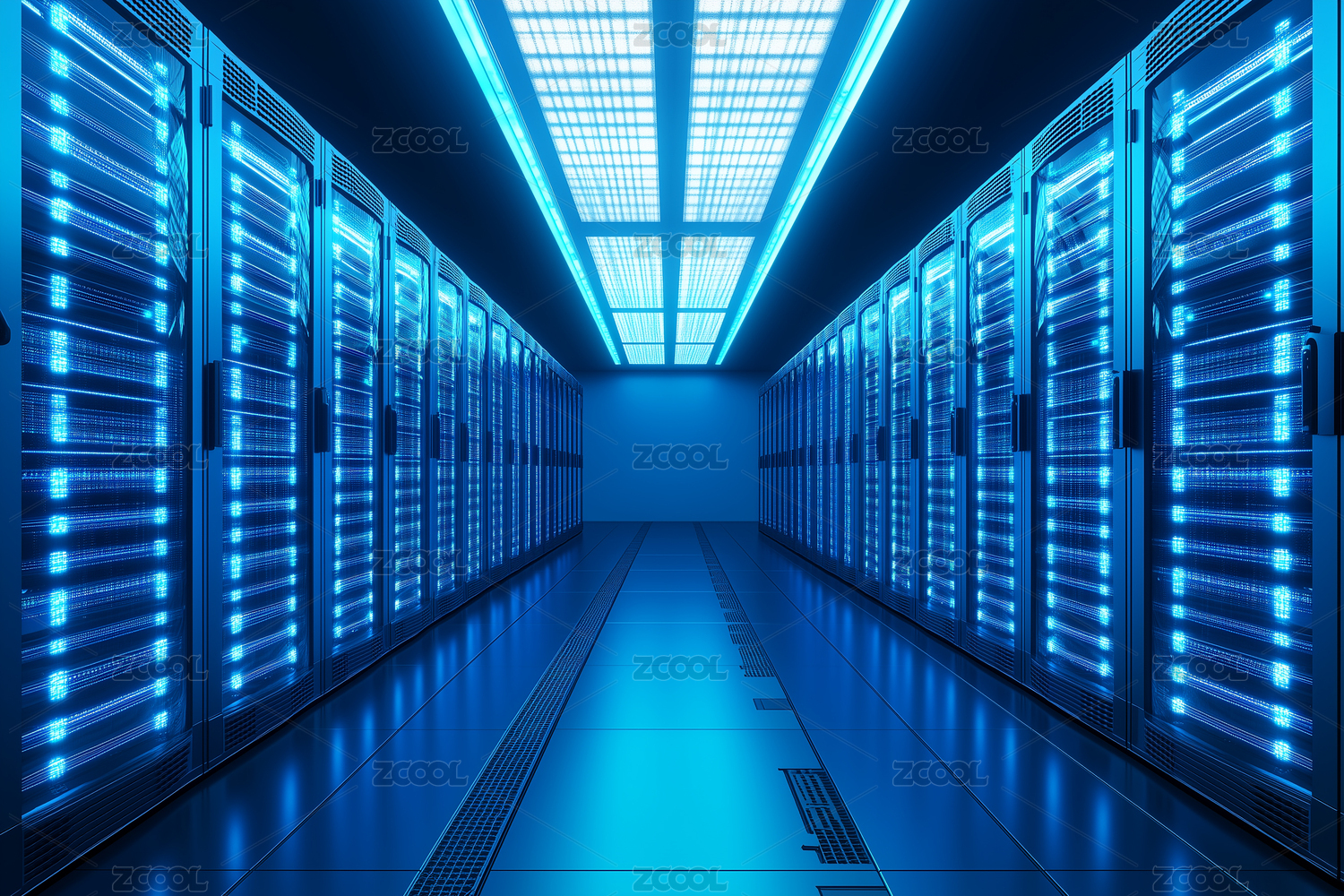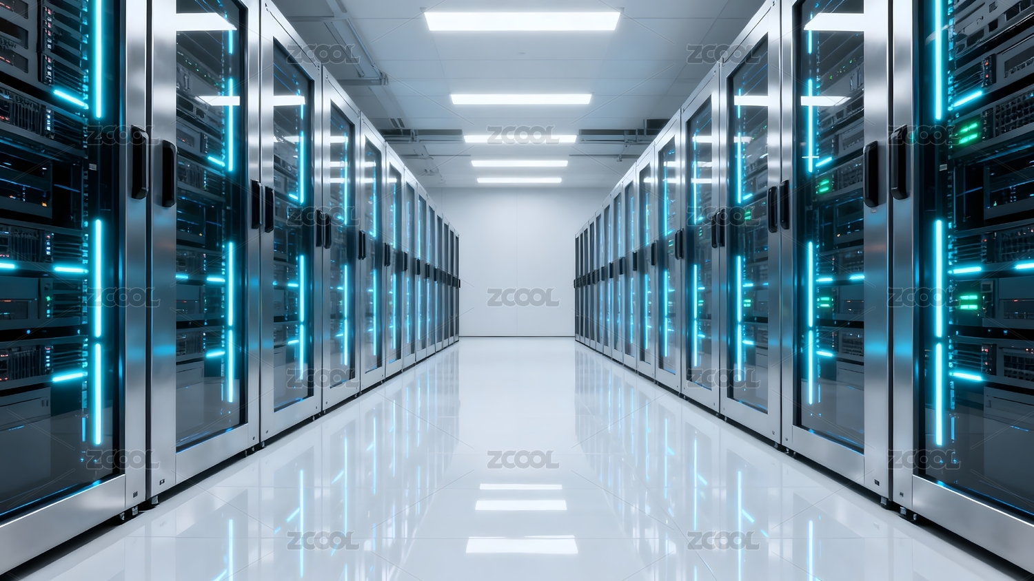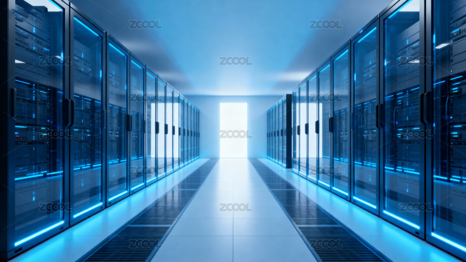 蓝色服务器机柜白色走廊
